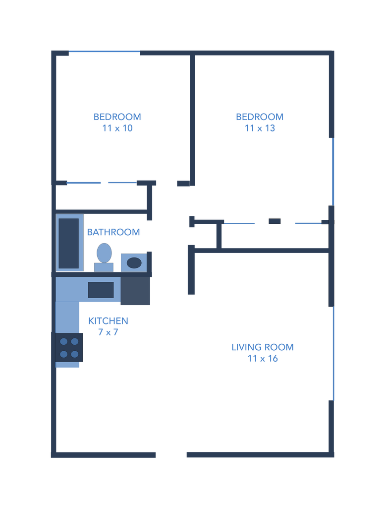 Modelo de apartamento: 2 Bedroom ApartmentsDesde $1,1452 Dormitorios, 1 Baño, 758-794 sq ftDisponible Ahora![]()