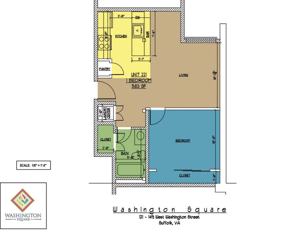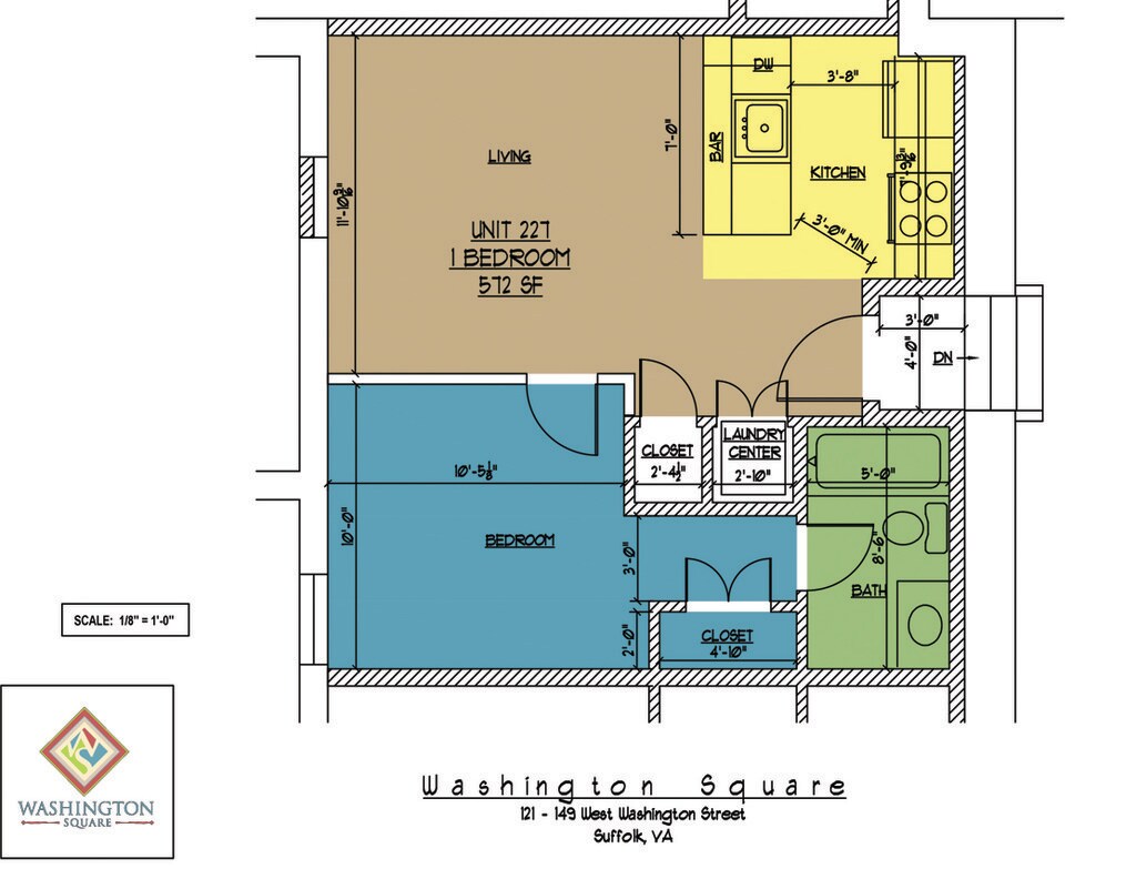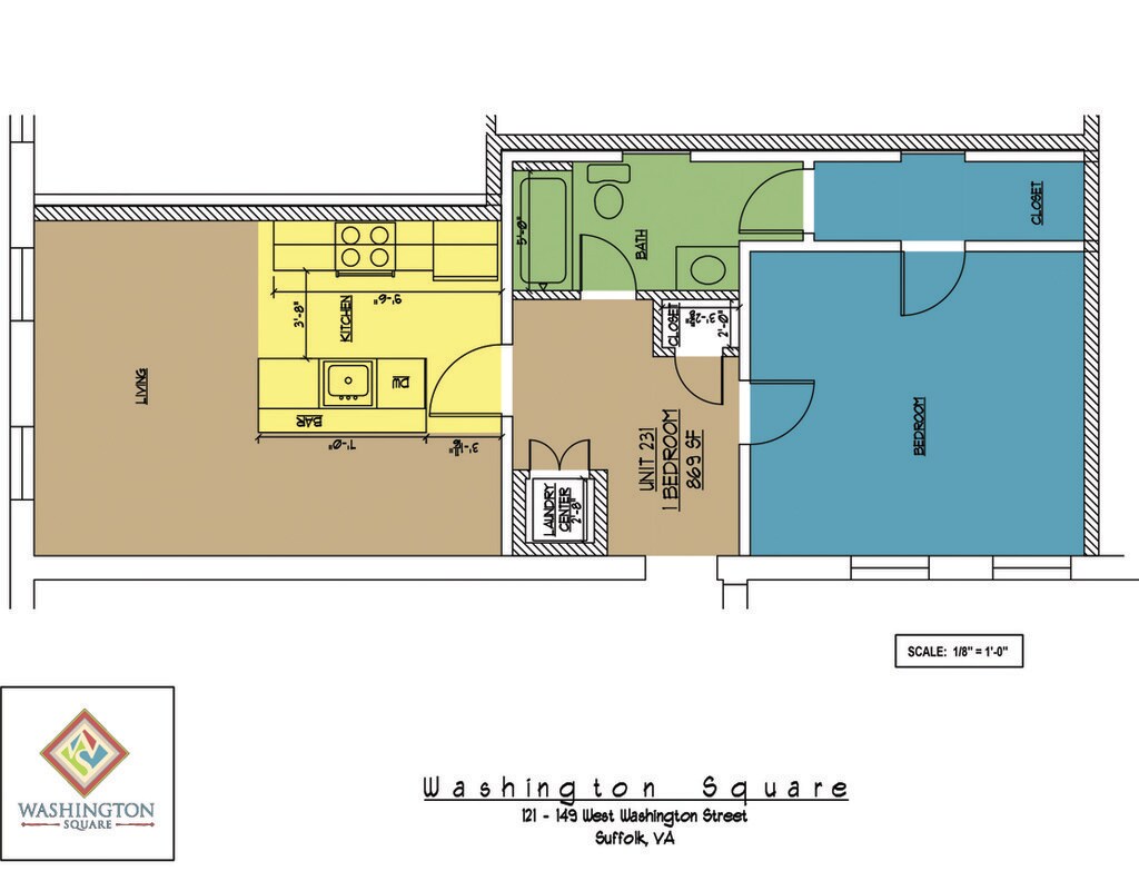En el cruce de dos de las más fascinantes calles en Suffolk; Washington y Main, está el nuevo edificio de apartamentos renovados, Washington Square. A poca distancia a pie o en bicicleta de varios parques y a solo unos pasos de excelentes restaurantes, como The Plaid Turnip, Harper's Table, Simply Susan's Bakery y Baron's Pub, con una gran cantidad de tiendas y la entretenida vida de la ciudad, también está a una poca distancia en auto de la ribera de Nansemond. Los apartamentos en el primer y segundo piso han sido renovados de manera experta en 2014 para mantener el encanto histórico del edificio original, mientras que también presentan electrodomésticos modernos y acabados que hacen que la vida en Washington Square sea un sueño. Con pisos de madera originales, hermosas encimeras de granito, electrodomésticos de acero inoxidable, lavadora/secadora y baños con azulejos de diseñador, habitaciones grandes con vestidores grandes y altos techos tipo loft, Washington Square es el lugar para estar. Vivir en Washington Square hace que la vida sea más fácil. Servicios públicos incluidos: agua, alcantarillado y recolección de residuos