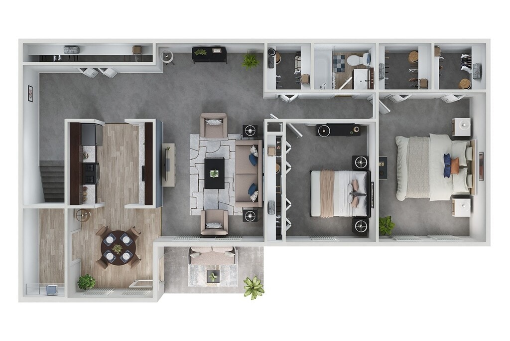 2 Dormitorios, 1 Baño, 1005 pies²Disponible AhoraGalería del Modelo