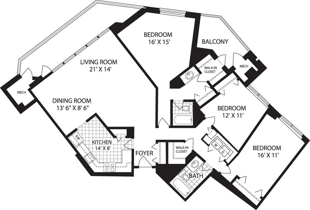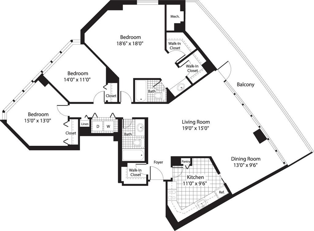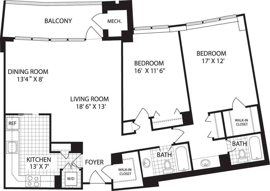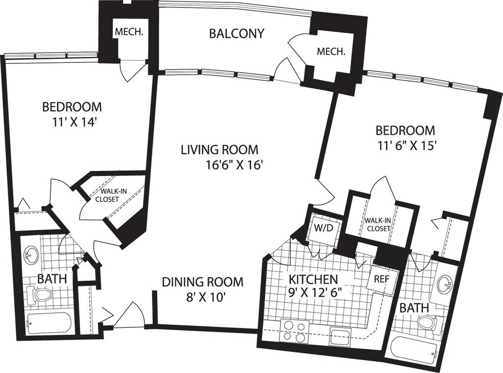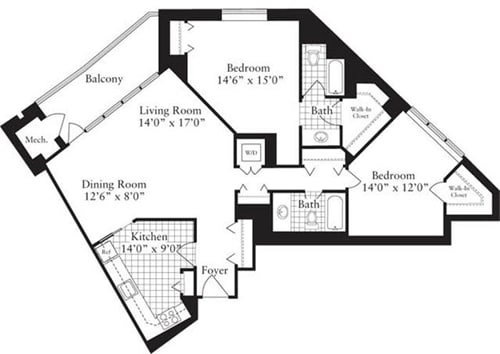Modelo de apartamento: 1 Bedroom JLlame para Precios1 Dormitorio, 1 Baño, 805 sq ftNo Disponible![]()