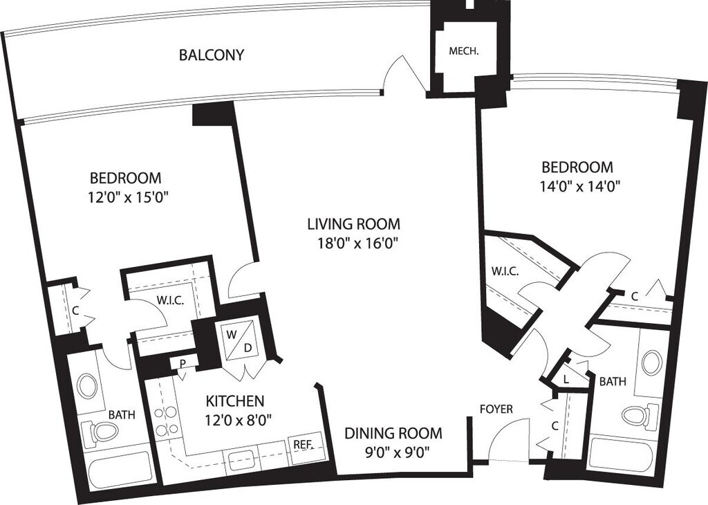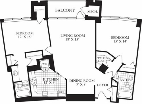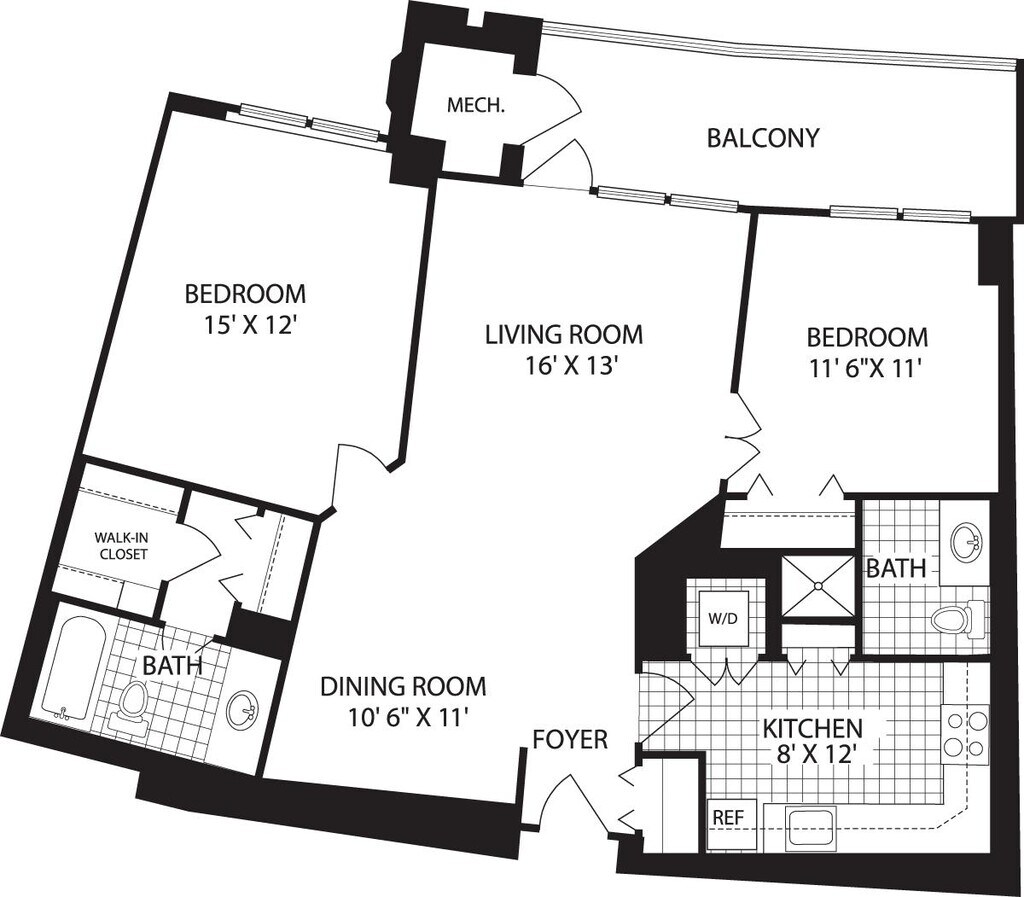 Modelo de apartamento: 1 Bedroom LLlame para Precios1 Dormitorio, 1 Baño, 815 sq ftNo Disponible![]()