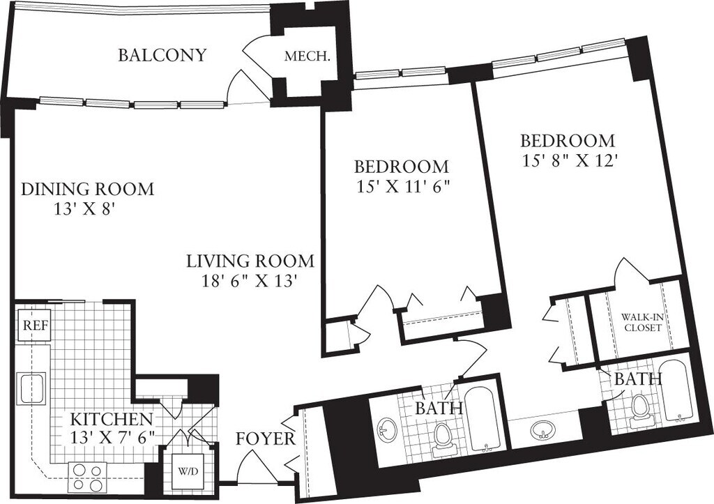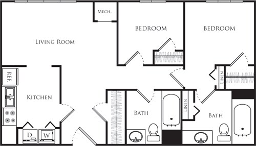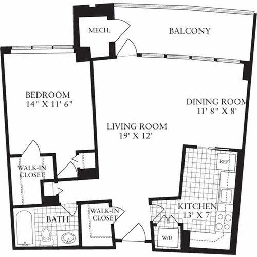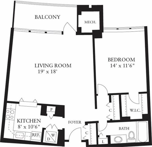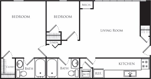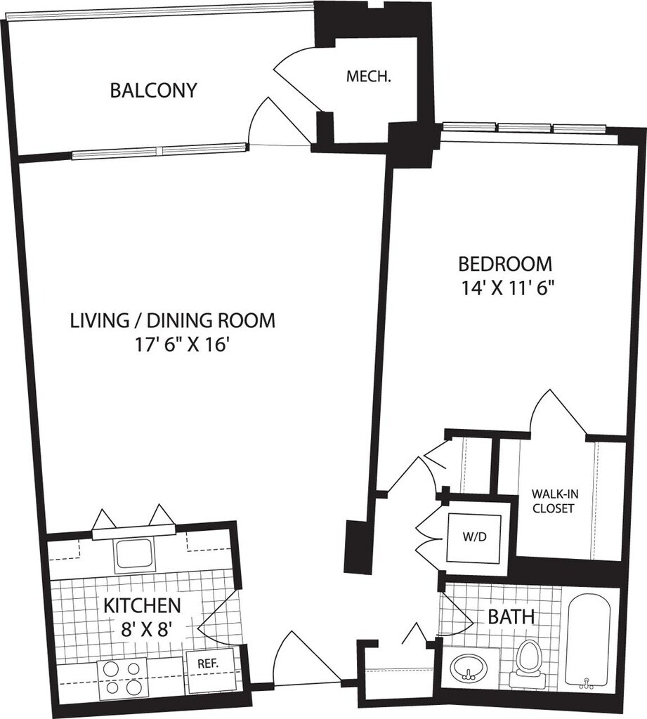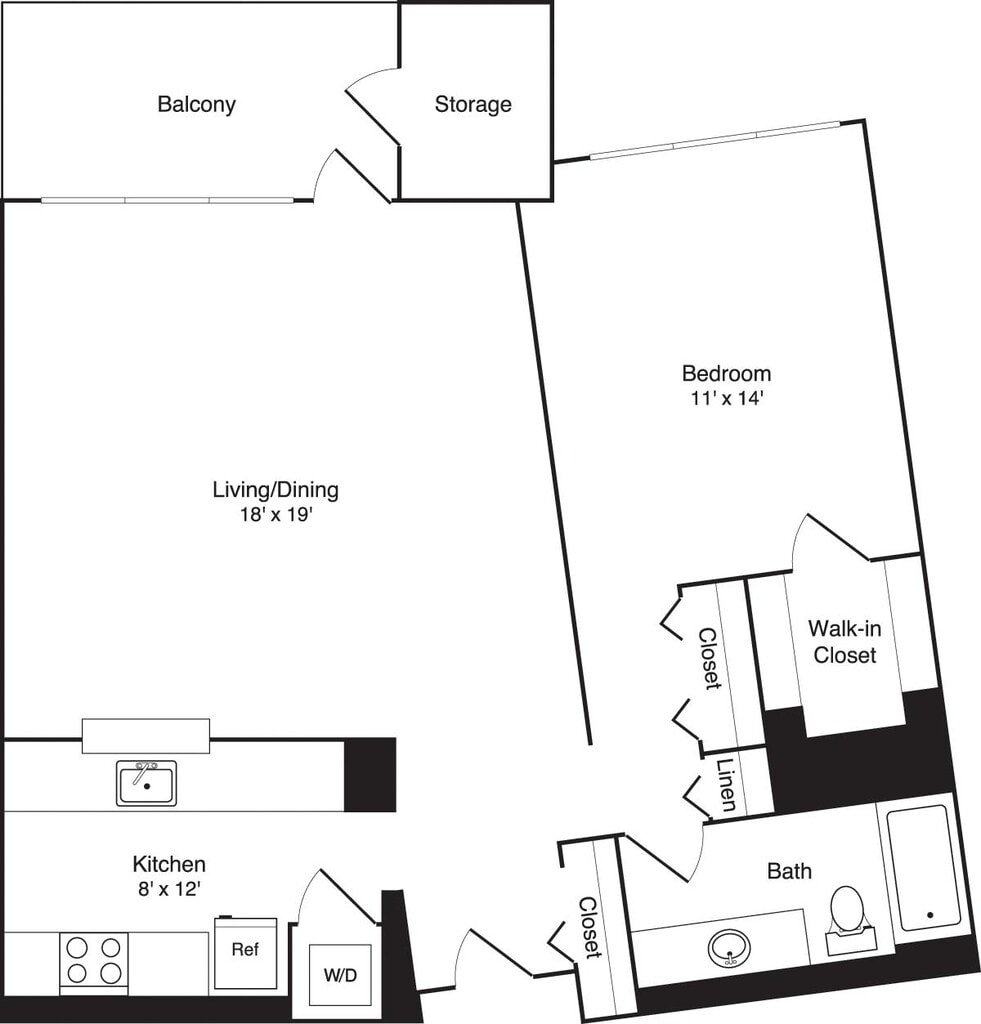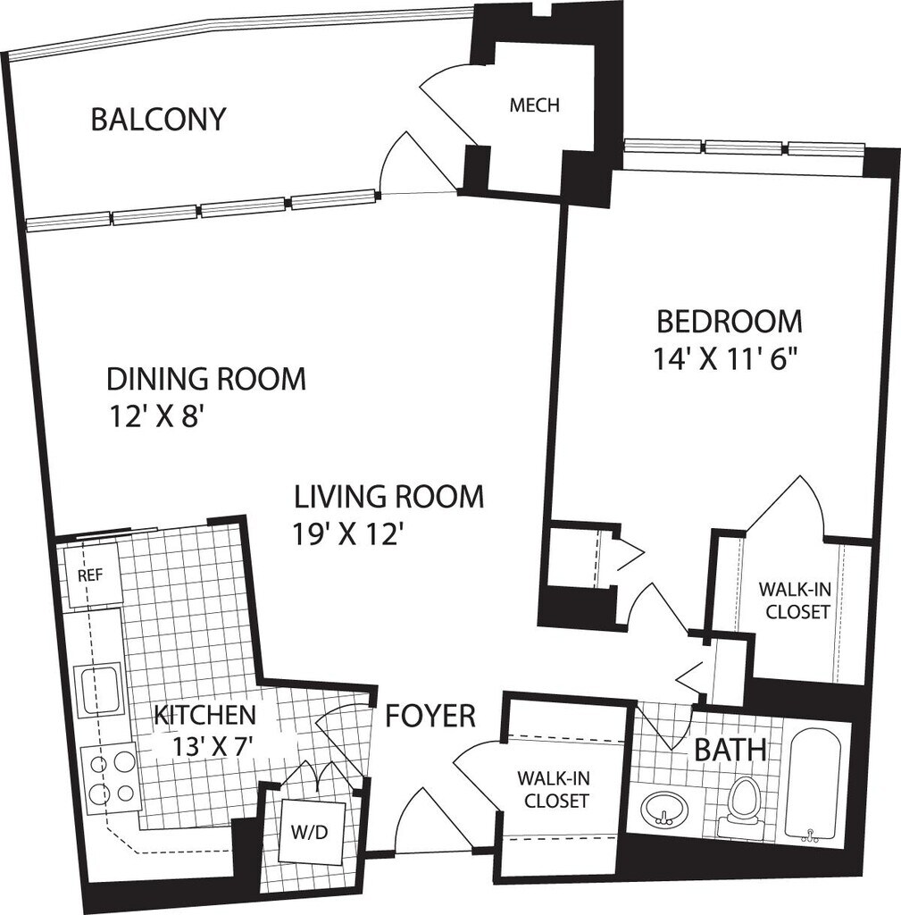Modelo de apartamento: 1 Bedroom KLlame para Precios1 Dormitorio, 1 Baño, 805 sq ftNo Disponible![]()