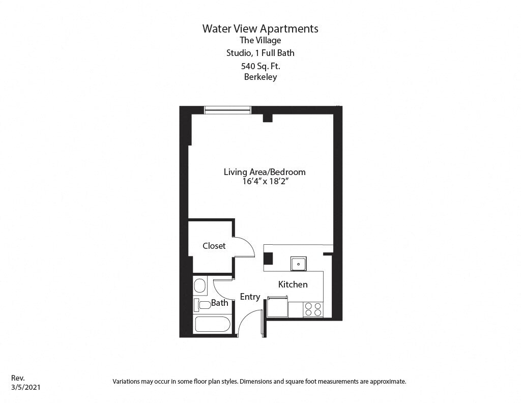 Studio/1 Bath with Full Kitchen - Plano 1 ![]()