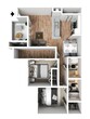 Modelo de apartamento: Three BedDesde $1,6143 Dormitorios, 2 Baños, 1243 sq ftDisponible AhoraThree Bed - Plano 1