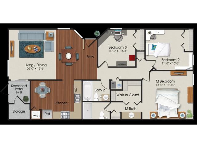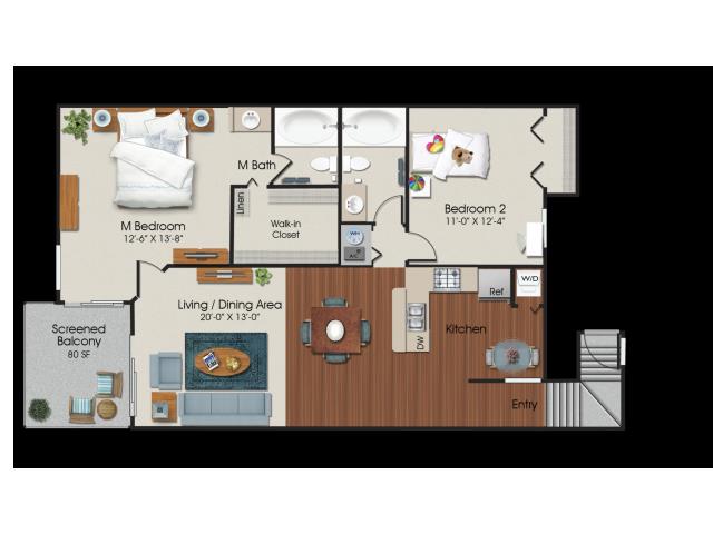 Modelo de apartamento: One Bed One Bath - A2Desde $1,8951 Dormitorio, 1 Baño, 862 sq ftDisponible Ahora![]()