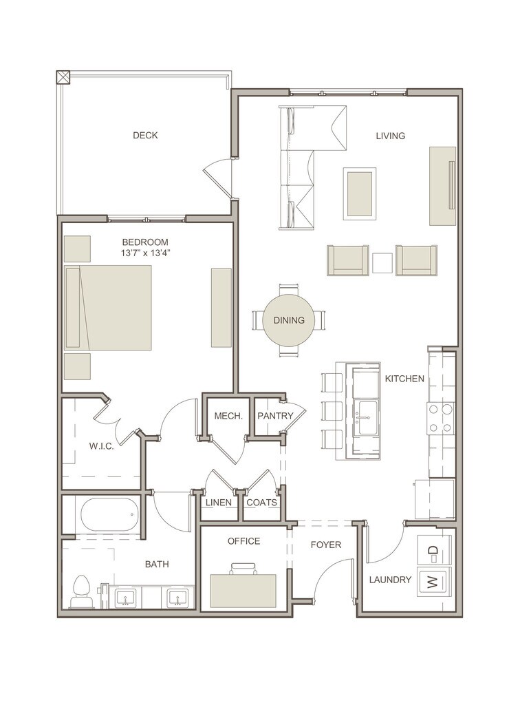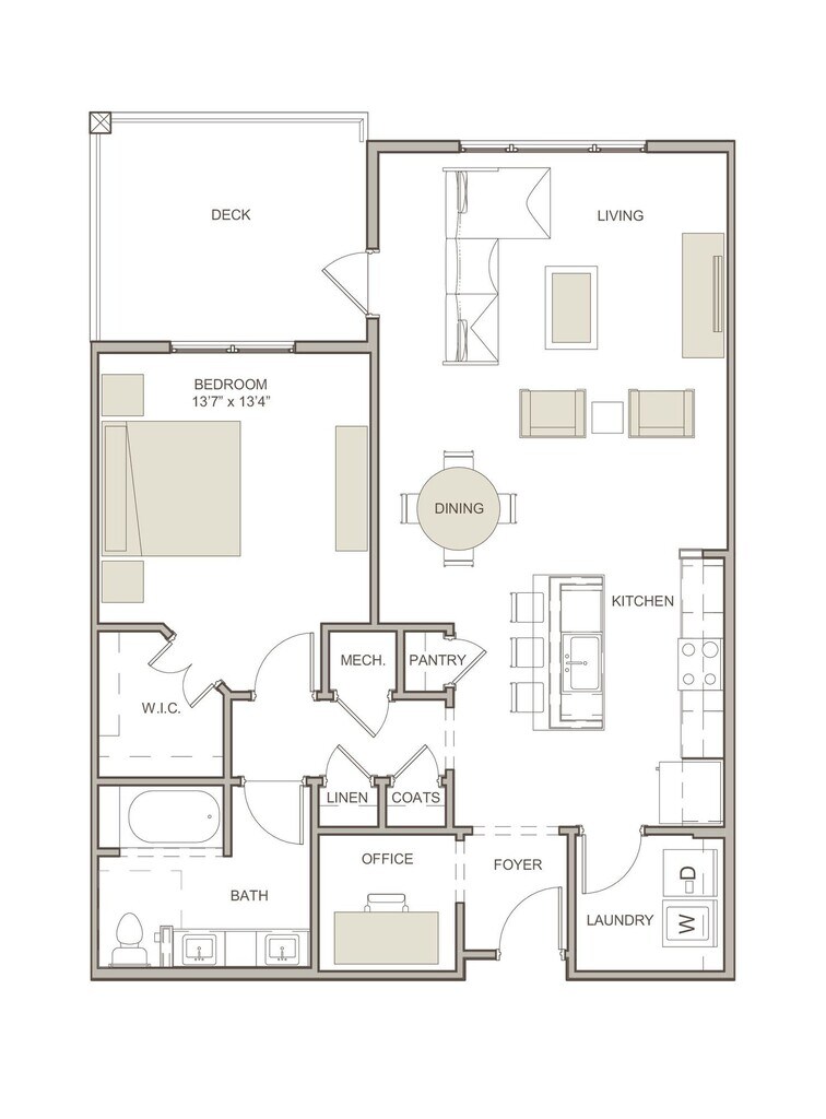 1 Dormitorio, 1 Baño, 1250 pies²Disponible AhoraGalería del Modelo