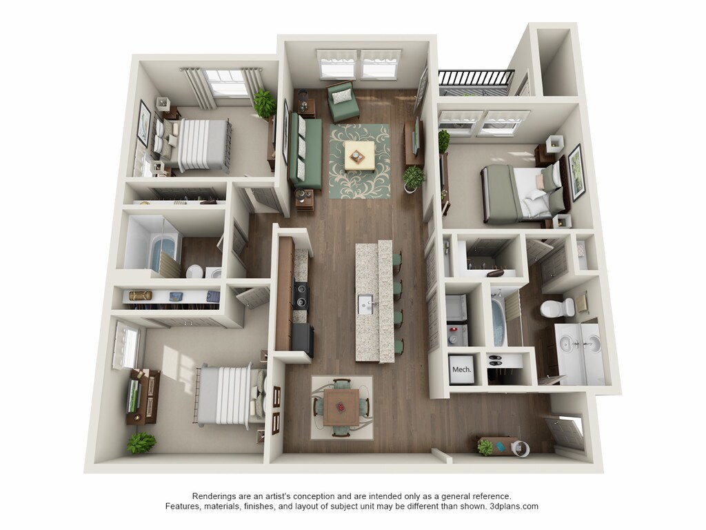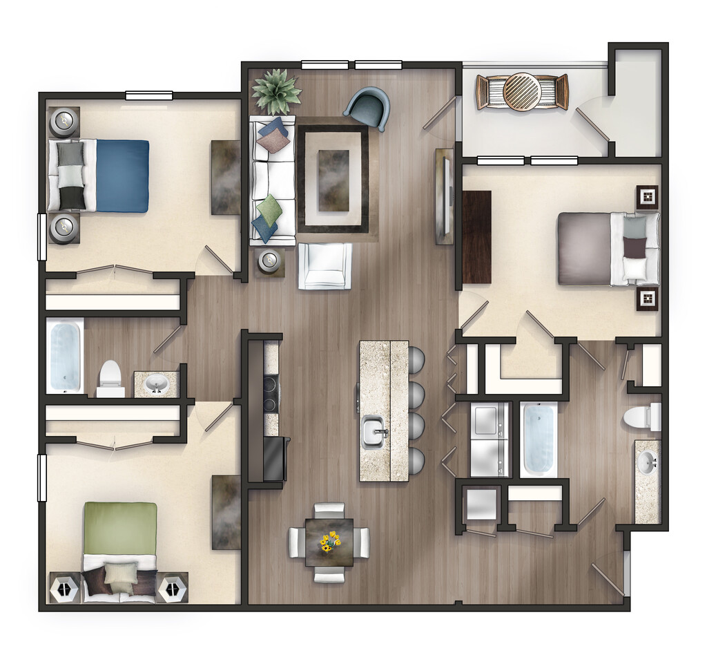 3 Dormitorios, 2 Baños, 1183 pies²Disponible Dec 16Galería del Modelo