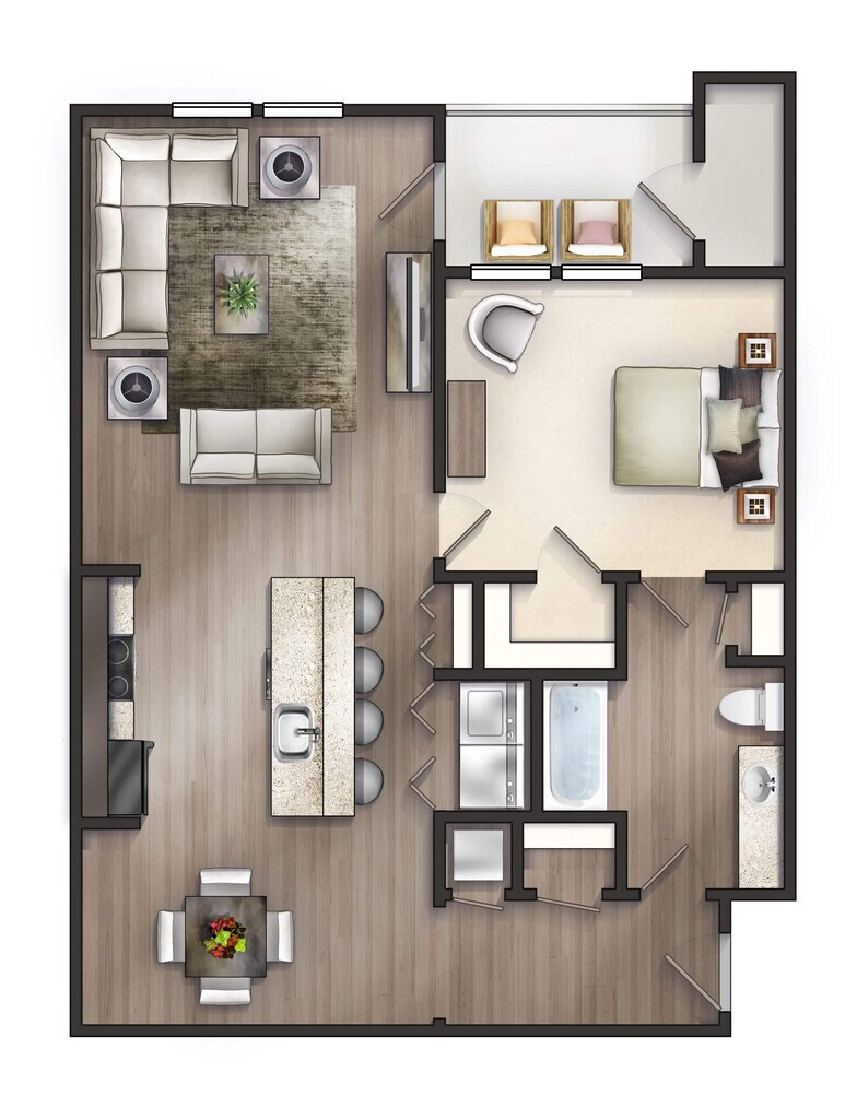 1 Dormitorio, 1 Baño, 779 pies²Disponible AhoraGalería del Modelo