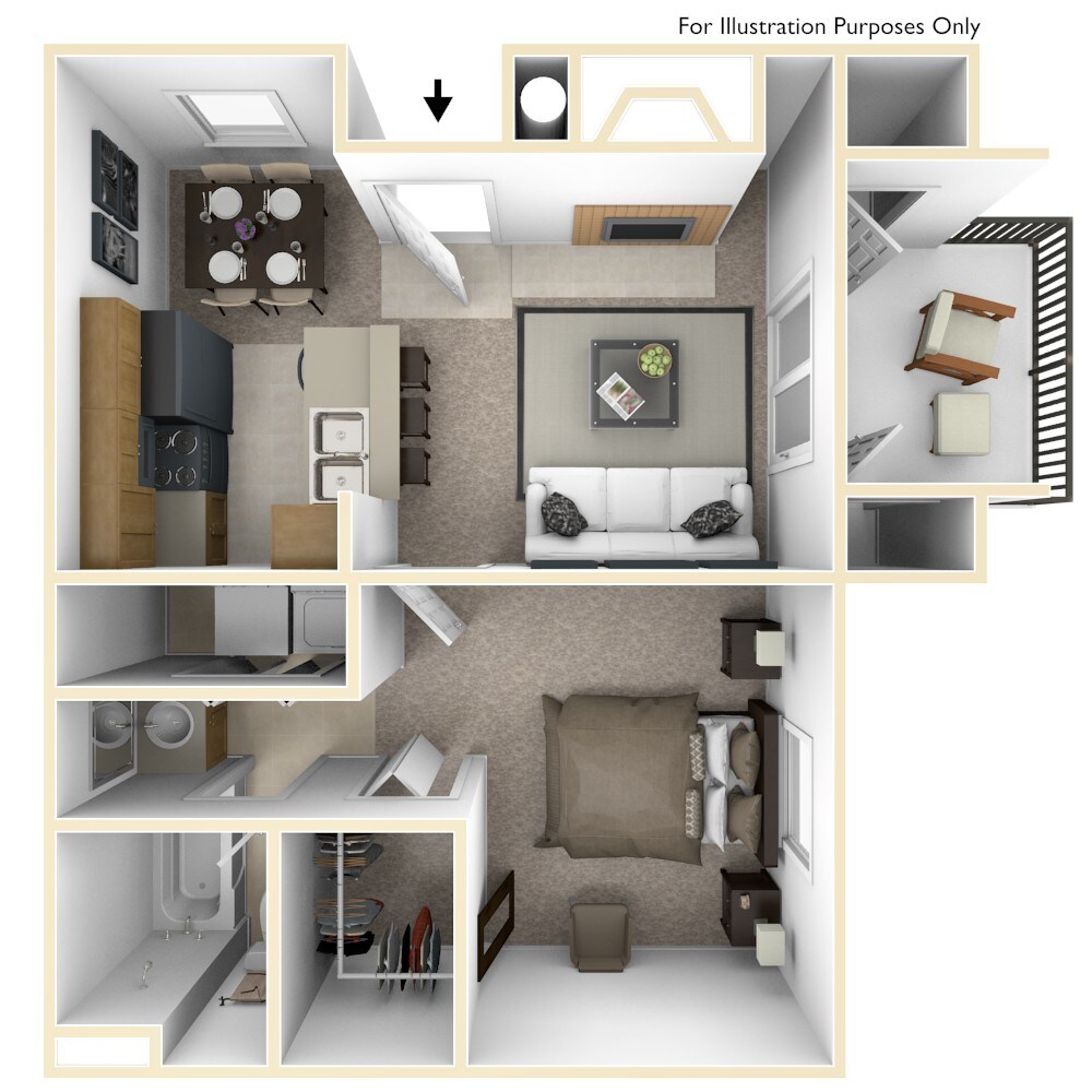 1 Dormitorio, 1 Baño, 735 pies²Galería del Modelo