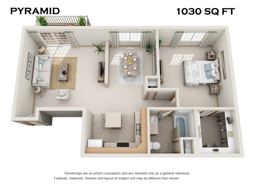 Modelo de apartamento: Pyramid$9991 Dormitorio, 1 Baño, 1030 sq ftNo Disponible![]()