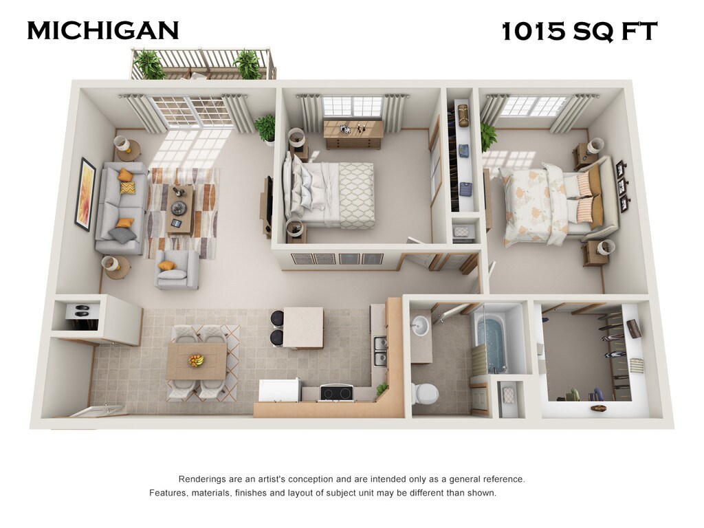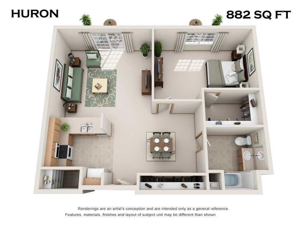 Modelo de apartamento: Huron$9501 Dormitorio, 1 Baño, 1035 sq ftNo Disponible![]()