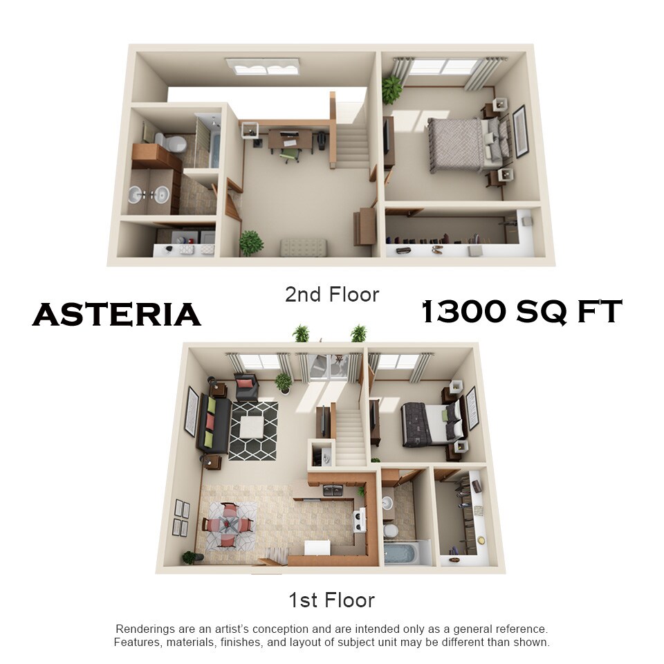 1 Dormitorio, 1 Baño, 1035 pies²Galería del Modelo