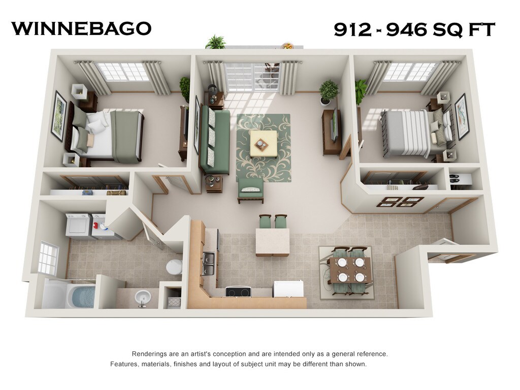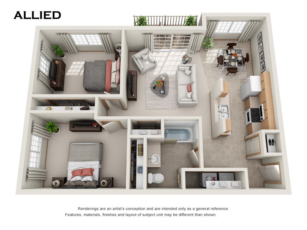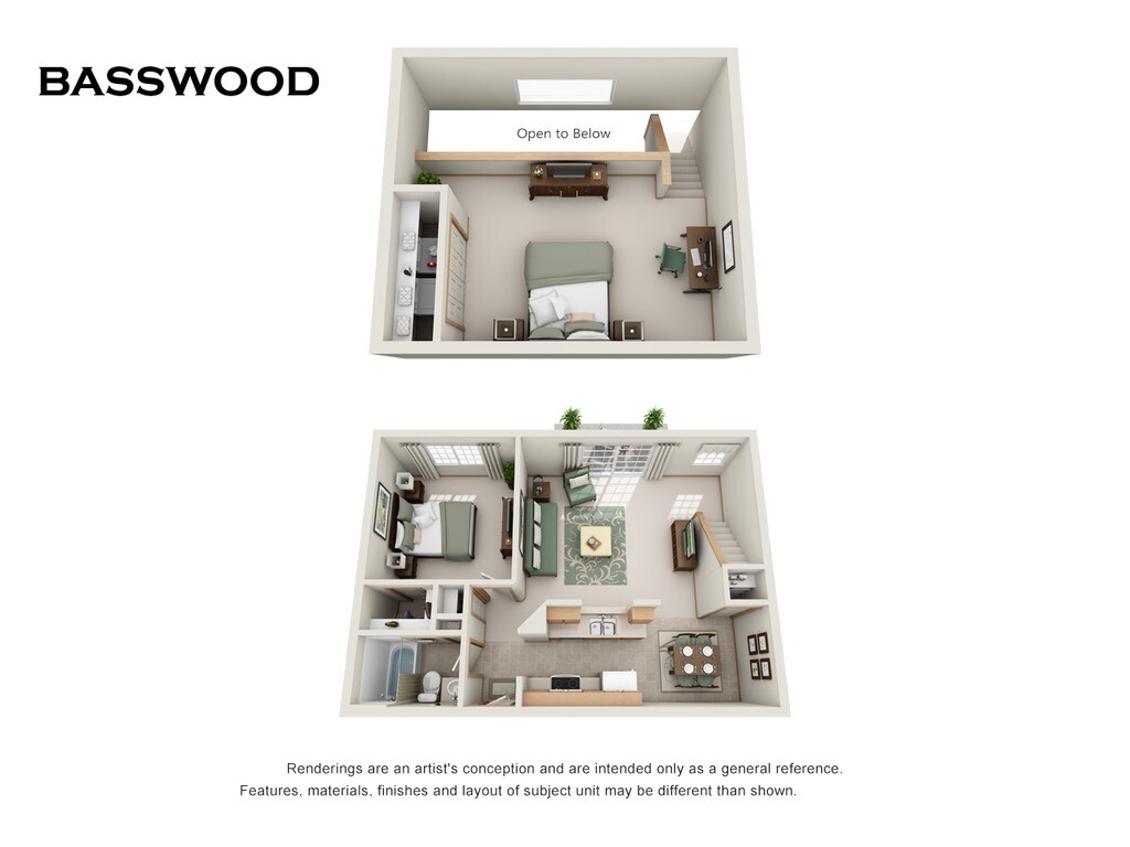Modelo de apartamento: Basswood$1,1251 Dormitorio, 1 Baño, 1061 sq ftNo Disponible![]()