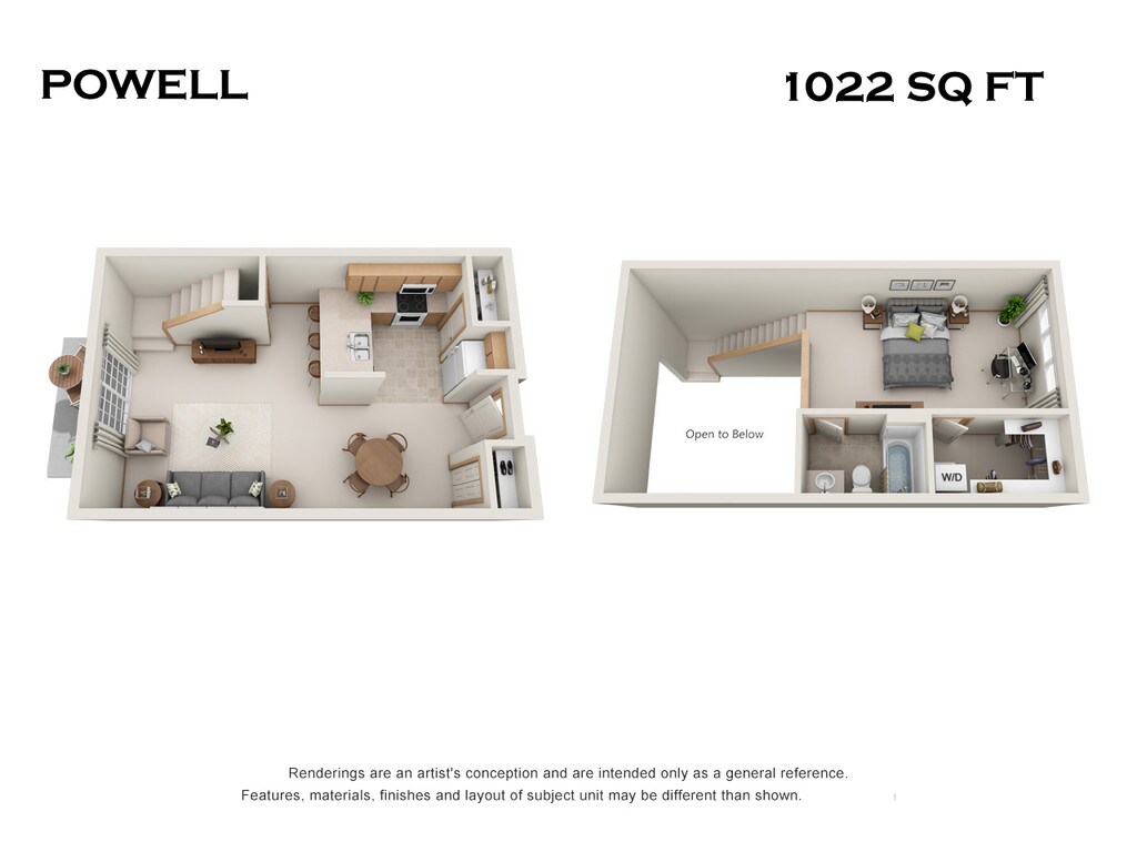 Modelo de apartamento: Powell$1,0501 Dormitorio, 1 Baño, 1022 sq ftNo Disponible![]()
