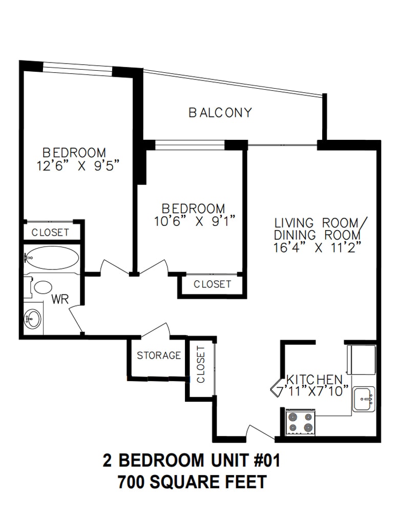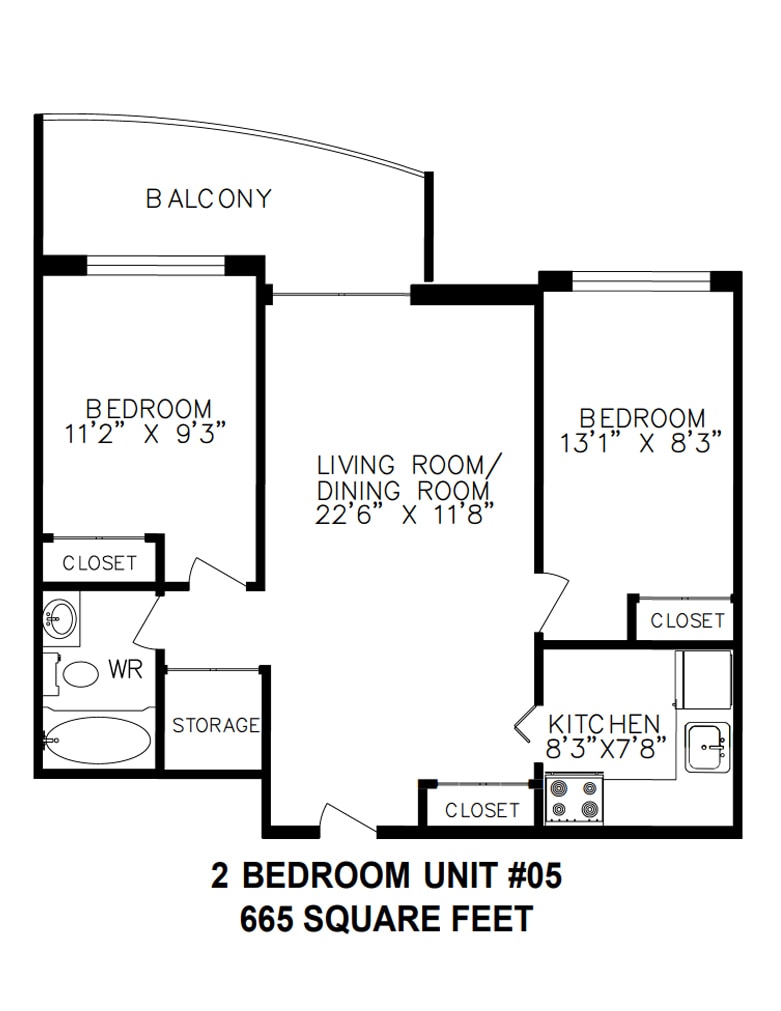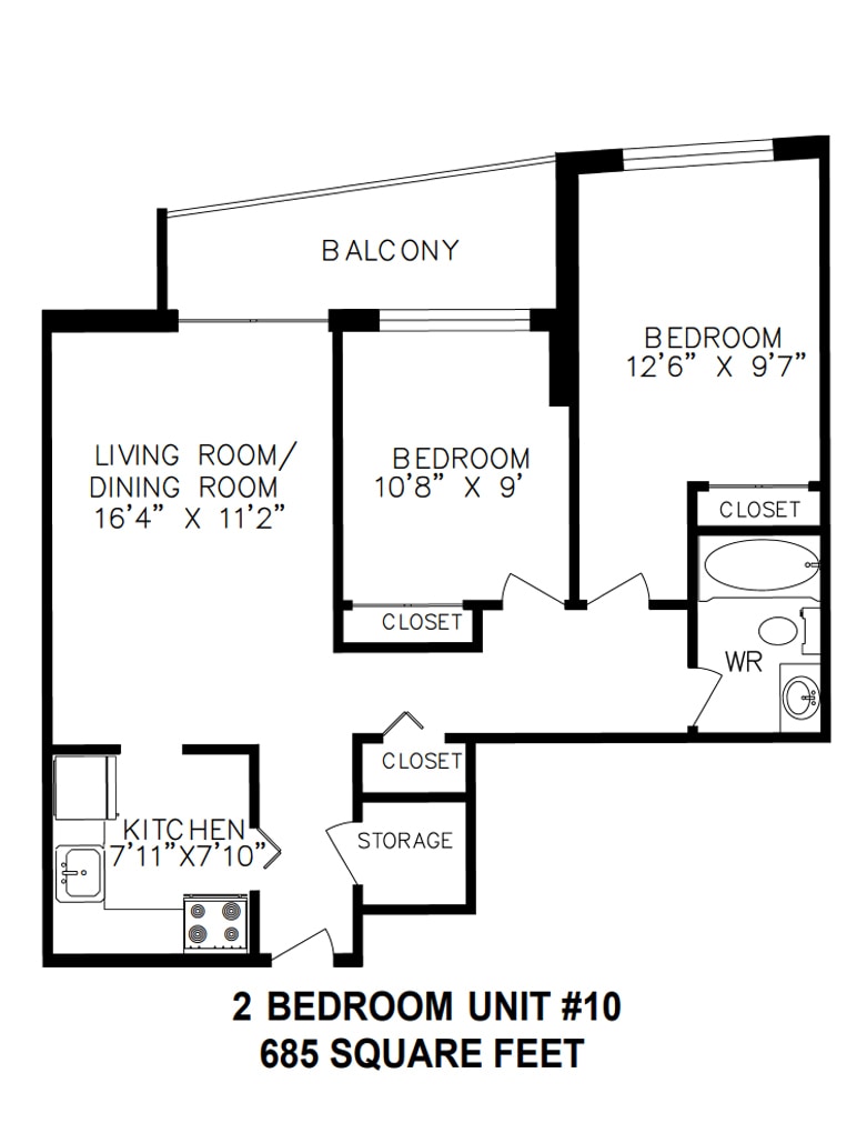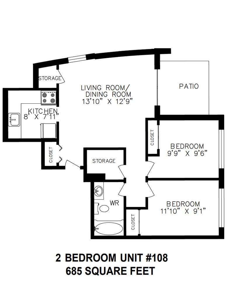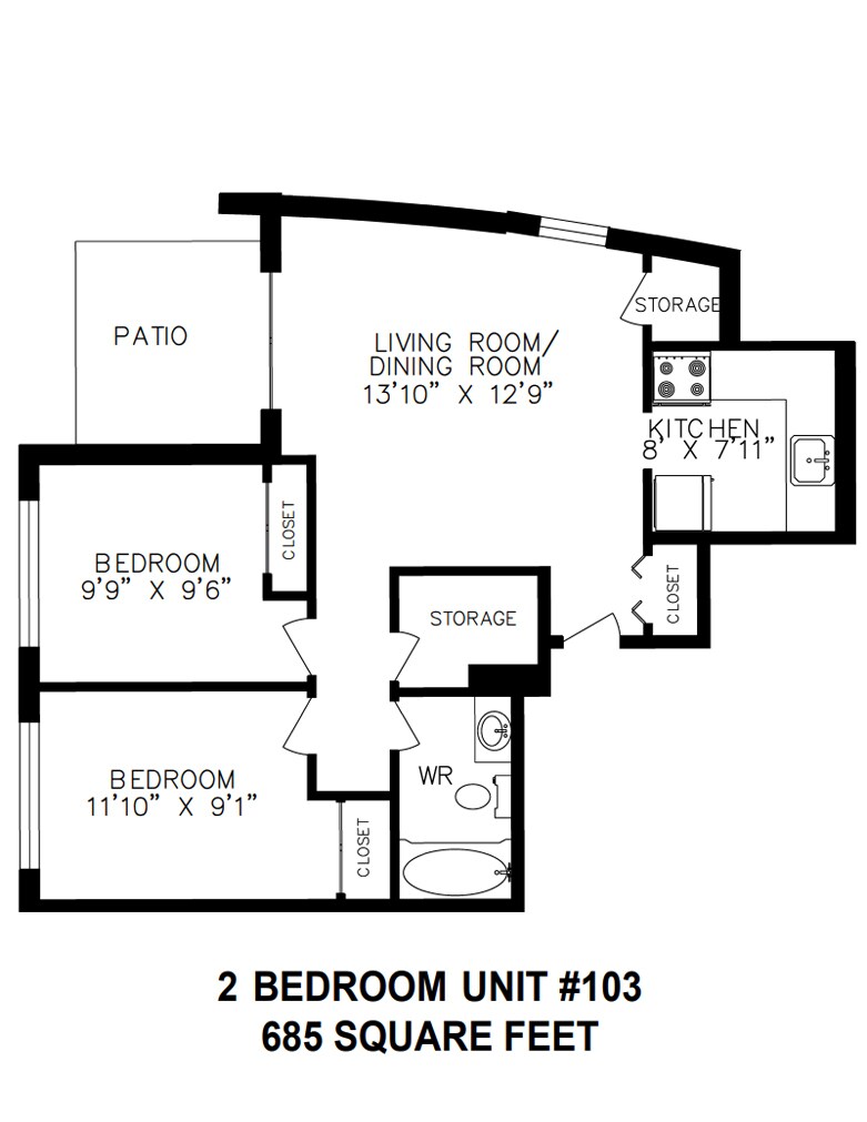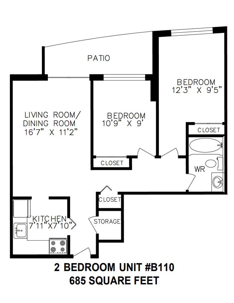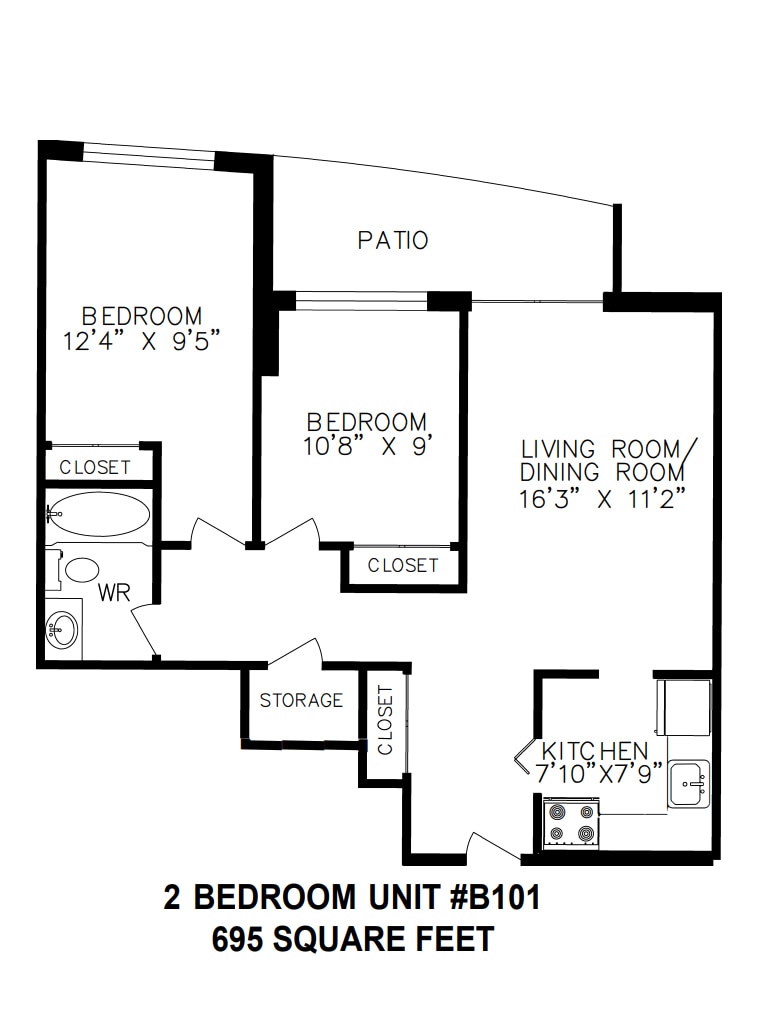 2 Dormitorios, 1 Baño, 675 pies²Disponible AhoraGalería del Modelo