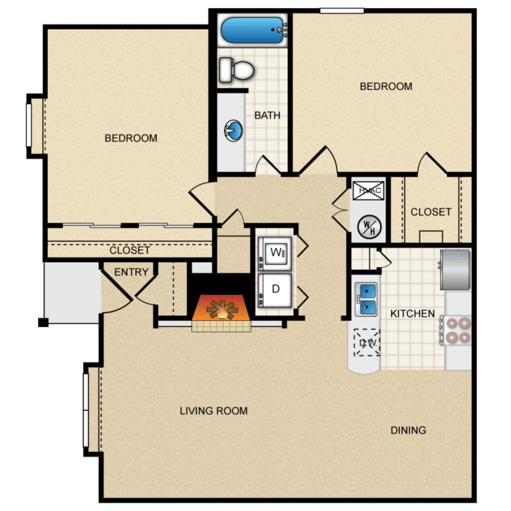 Modelo de apartamento: The Claridge1 Dormitorio, 1 Baño, 770 sq ftDisponible February 14, 2026PlanosFotos![]()