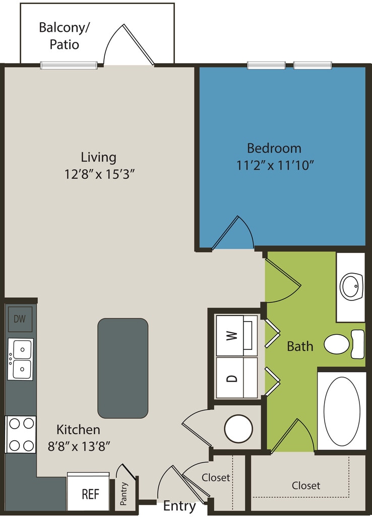 Modelo de apartamento: Studio-S2Llame para PreciosEstudio, 1 Baño, 563 sq ftNo Disponible![]()