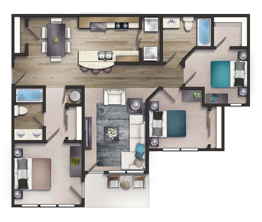 Modelo de apartamento: Niven$1,8953 Dormitorios, 2 Baños, 1182 sq ftDisponible December 9, 2025![]()