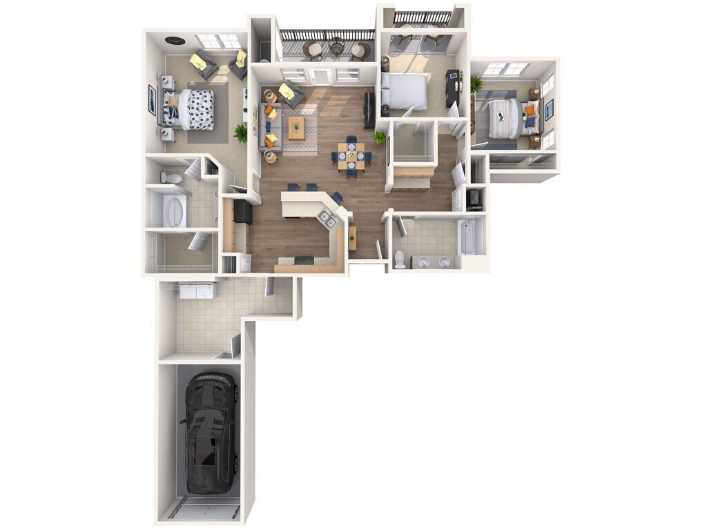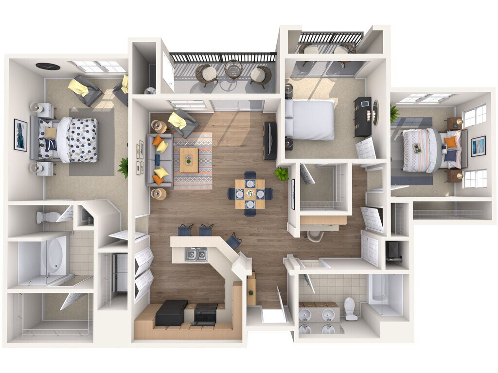 Modelo de apartamento: C23 Dormitorios, 2 Baños, 1433 sq ftNo Disponible![]()