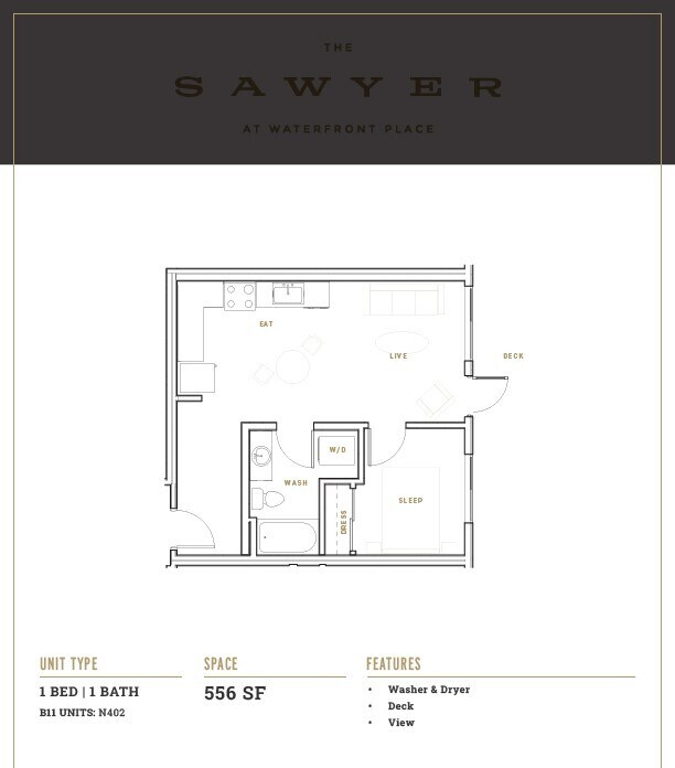 Waterfront Place ofrece apartamentos de 1 Dormitorio desde $1,852 con 556–932 pies cuadrados. Aquí está el precio actual y la disponibilidad: