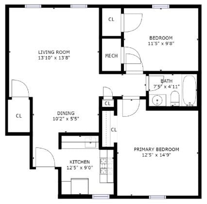 2 Dormitorios, 1 Baño, 900 pies²Disponible AhoraGalería del Modelo