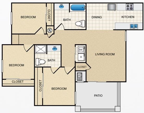 3 Bedroom 2 Bath - Plano 1 Unidad de apartamento: 185Modelo de apartamento: 3 Bedroom 2 Bath$2,0453 Dormitorios, 2 Baños, 1136 sq ftDisponible November 10, 2025