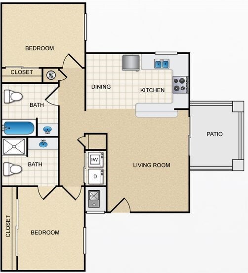 2 Bedroom 2 Bath - Plano 1 3 Dormitorios
