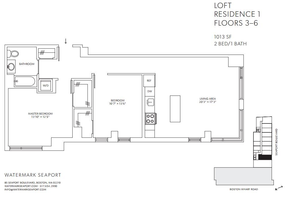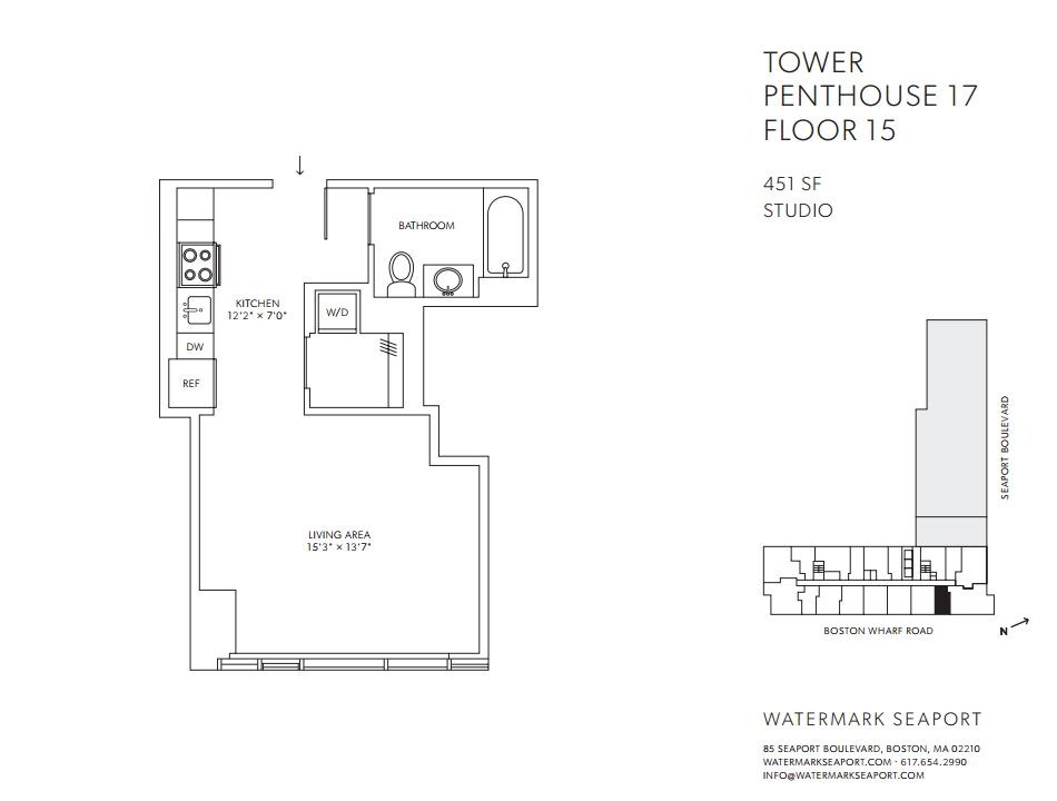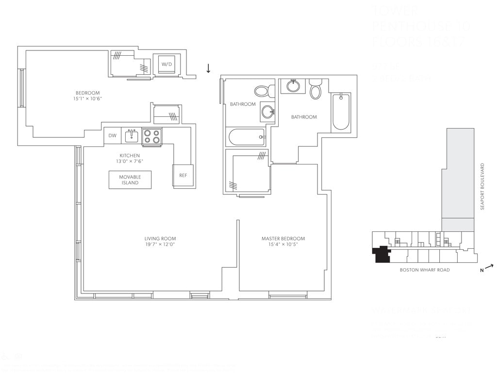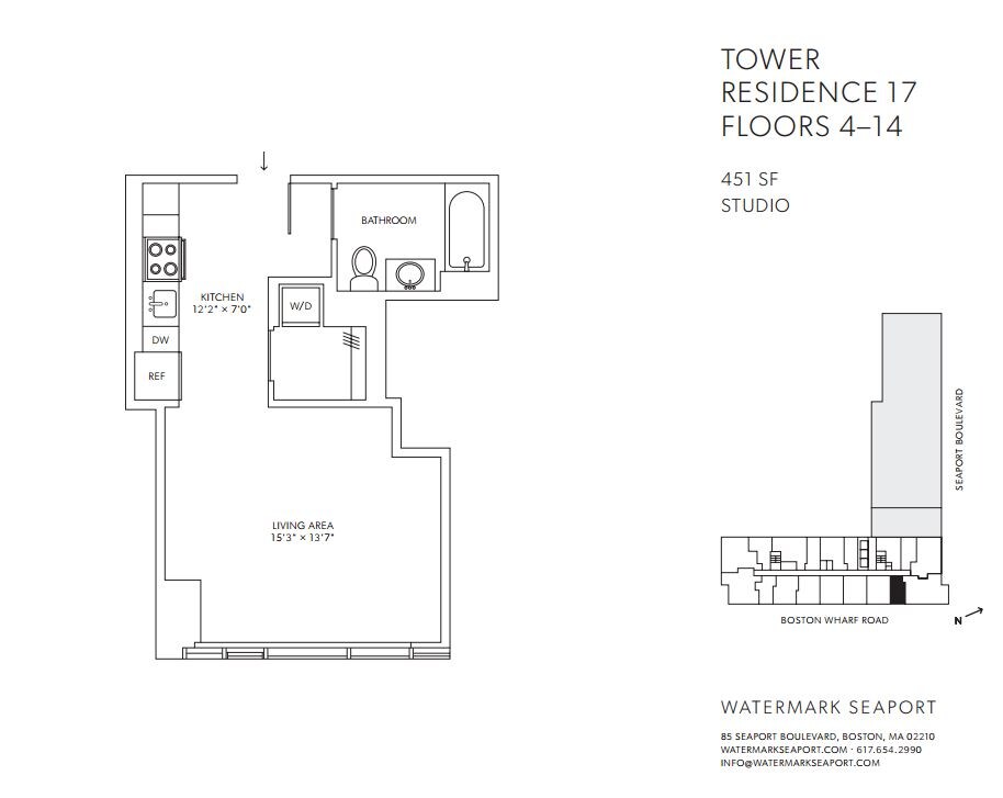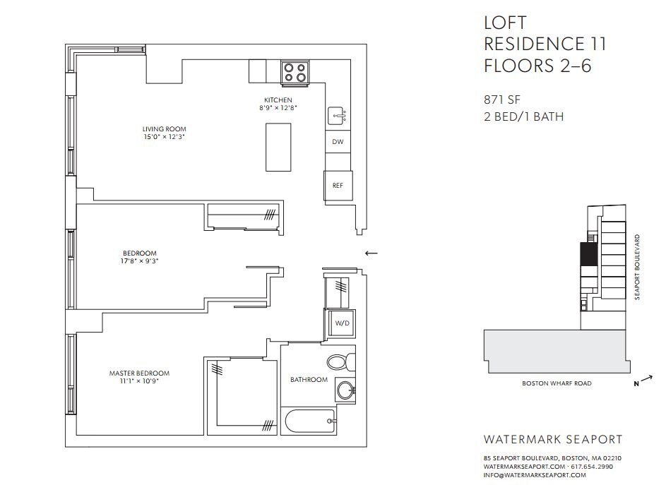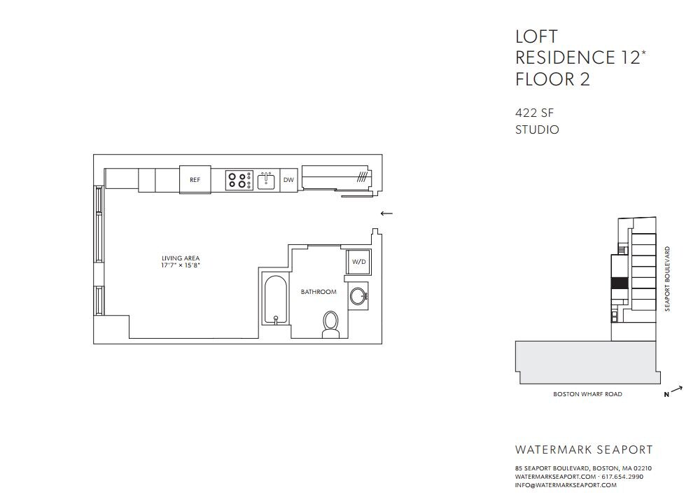 Watermark Seaport ahora ofrece recorridos en persona con distanciamiento social solo con cita previa; también puedes hacer un recorrido virtual. Llama hoy mismo para obtener más información. Watermark Seaport es una colección de torres de apartamentos de alquiler de lujo y modernos lofts. Ubicado en el corazón de la ciudad de Boston Seaport Square, Watermark Seaport está ubicado en el centro del animado distrito financiero, el pujantes Seaport y el histórico Fort Point. Las residencias varían desde estudios hasta apartamentos de tres habitaciones y se complementan con un paquete de comodidades incomparable.