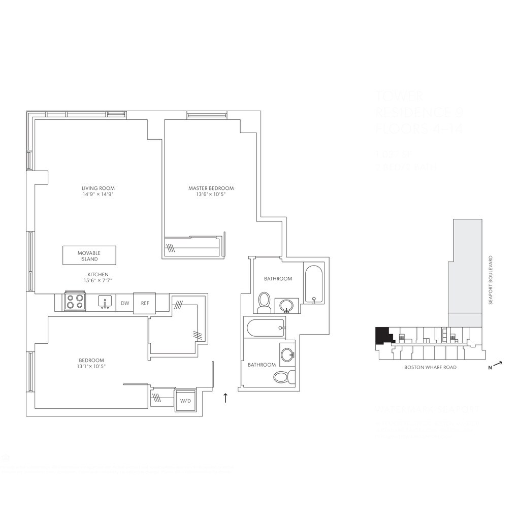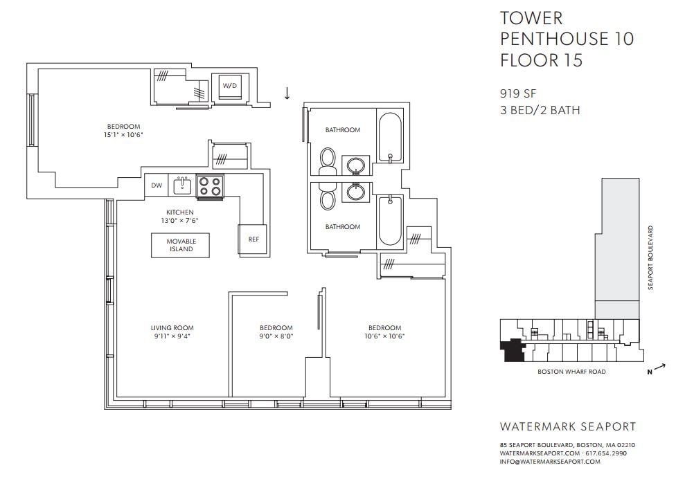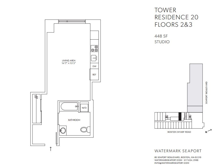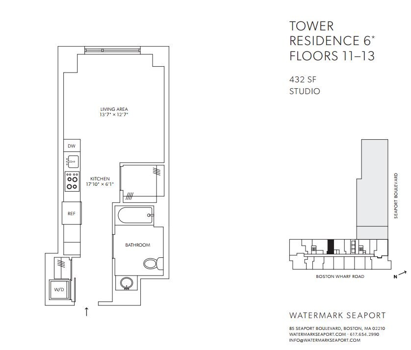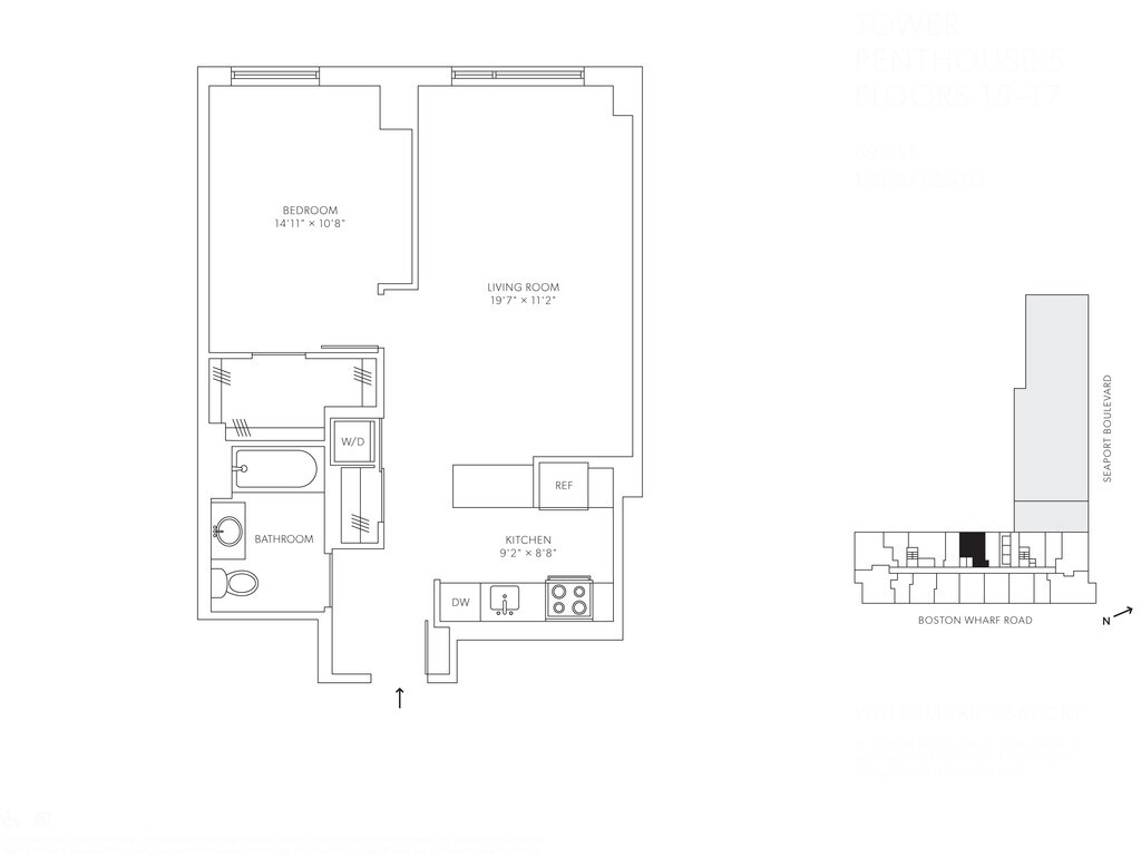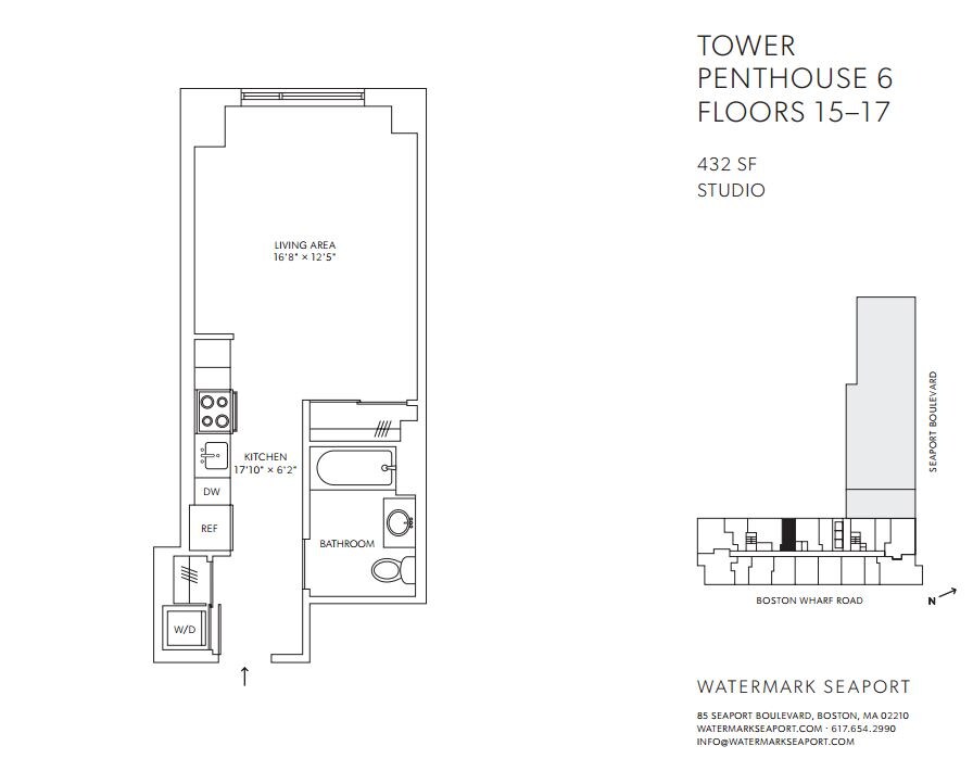 Watermark Seaport ahora ofrece recorridos en persona con distanciamiento social solo con cita previa; también puedes hacer un recorrido virtual. Llama hoy mismo para obtener más información. Watermark Seaport es una colección de torres de apartamentos de alquiler de lujo y modernos lofts. Ubicado en el corazón de la ciudad de Boston Seaport Square, Watermark Seaport está ubicado en el centro del animado distrito financiero, el pujantes Seaport y el histórico Fort Point. Las residencias varían desde estudios hasta apartamentos de tres habitaciones y se complementan con un paquete de comodidades incomparable.