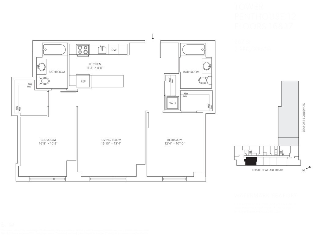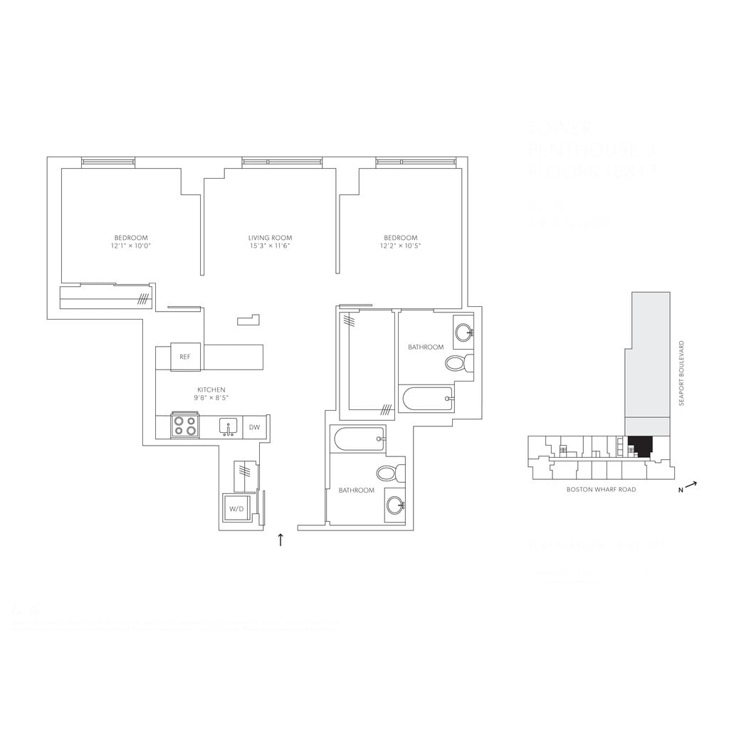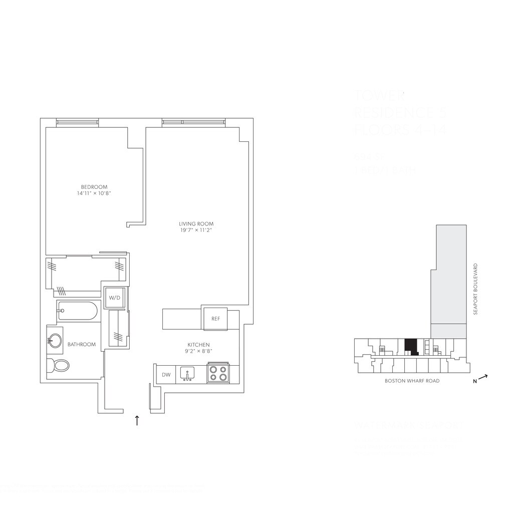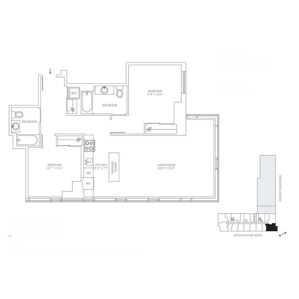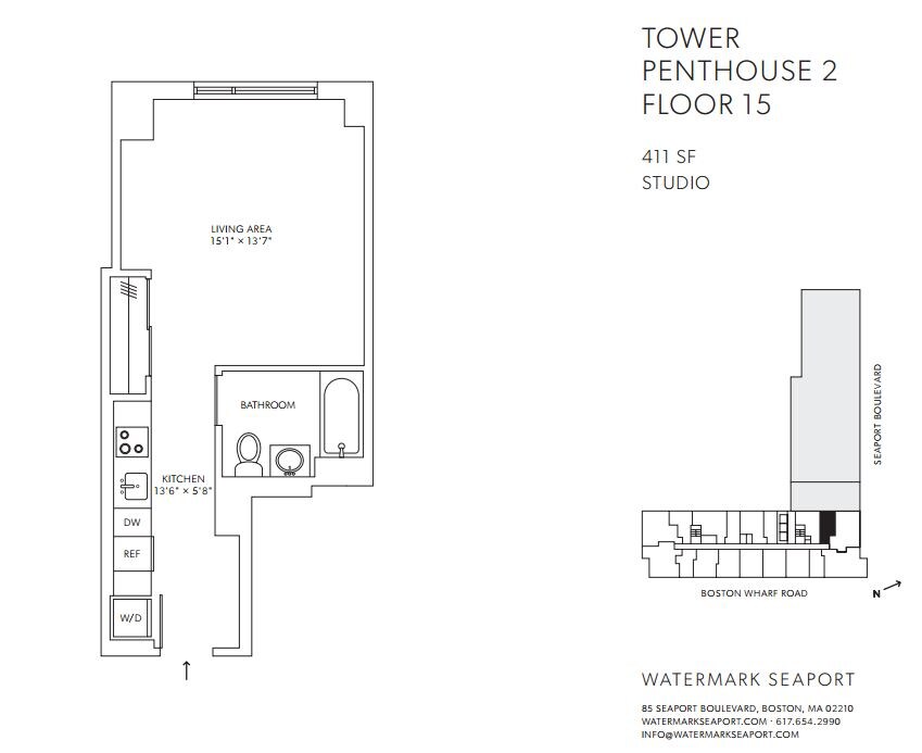 Watermark Seaport ahora ofrece recorridos en persona con distanciamiento social solo con cita previa; también puedes hacer un recorrido virtual. Llama hoy mismo para obtener más información. Watermark Seaport es una colección de torres de apartamentos de alquiler de lujo y modernos lofts. Ubicado en el corazón de la ciudad de Boston Seaport Square, Watermark Seaport está ubicado en el centro del animado distrito financiero, el pujantes Seaport y el histórico Fort Point. Las residencias varían desde estudios hasta apartamentos de tres habitaciones y se complementan con un paquete de comodidades incomparable.
