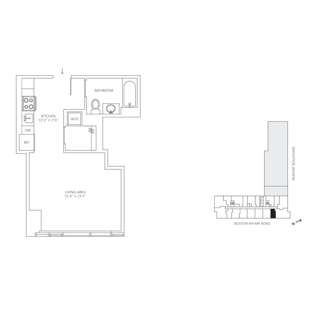 Watermark Seaport ofrece apartamentos de Estudio a 3 Dormitorios desde $2,931 con 300–1,129 pies cuadrados. Aquí está el precio actual y la disponibilidad: