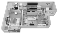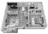 1 Dormitorio, 1 Baño, 764 pies²Precio Mensual TotalDisponible AhoraGalería del Modelo
