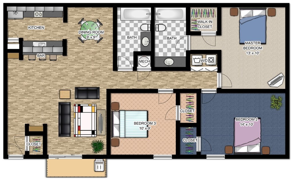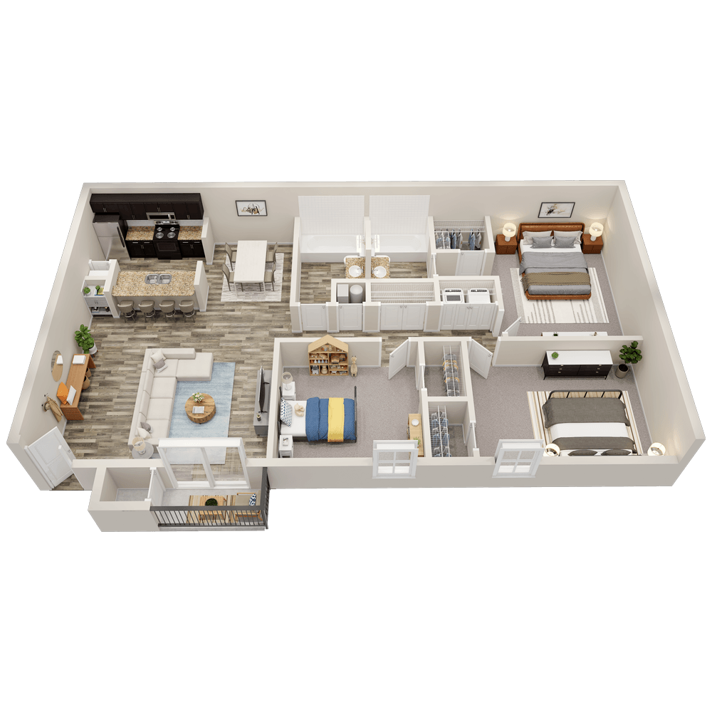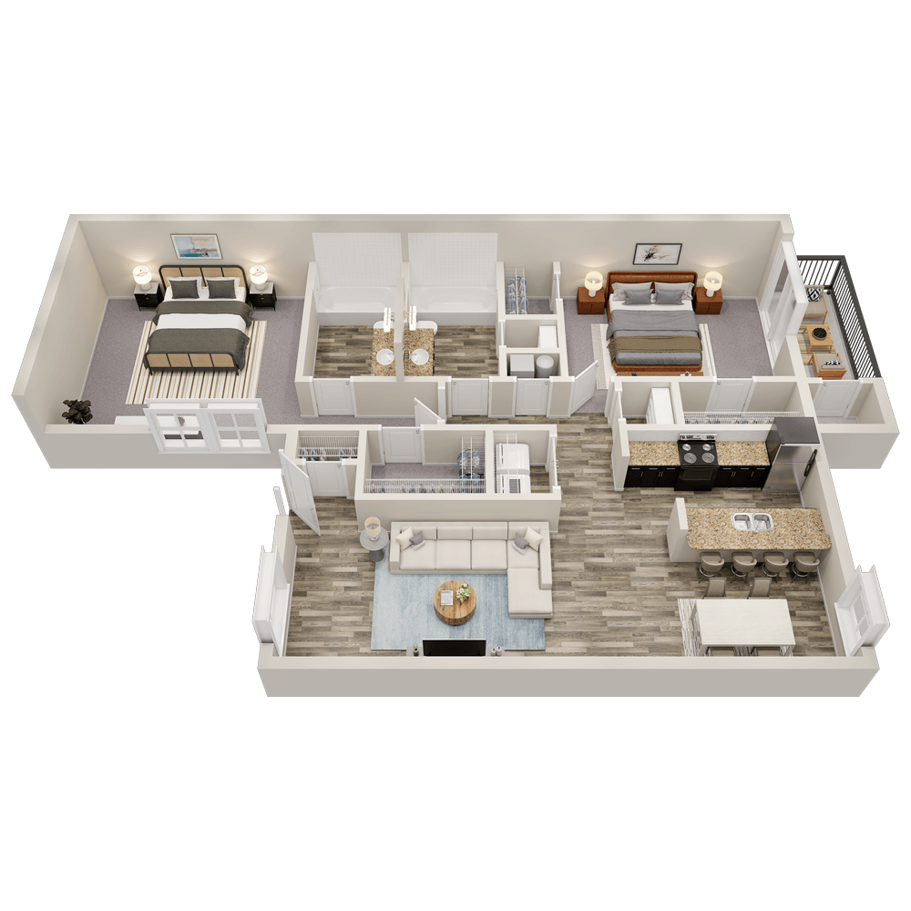 2 Dormitorios, 2 Baños, 1102 pies²Disponible AhoraEl más grandeEsta opción tiene las unidades más grandes para este modeloGalería del Modelo