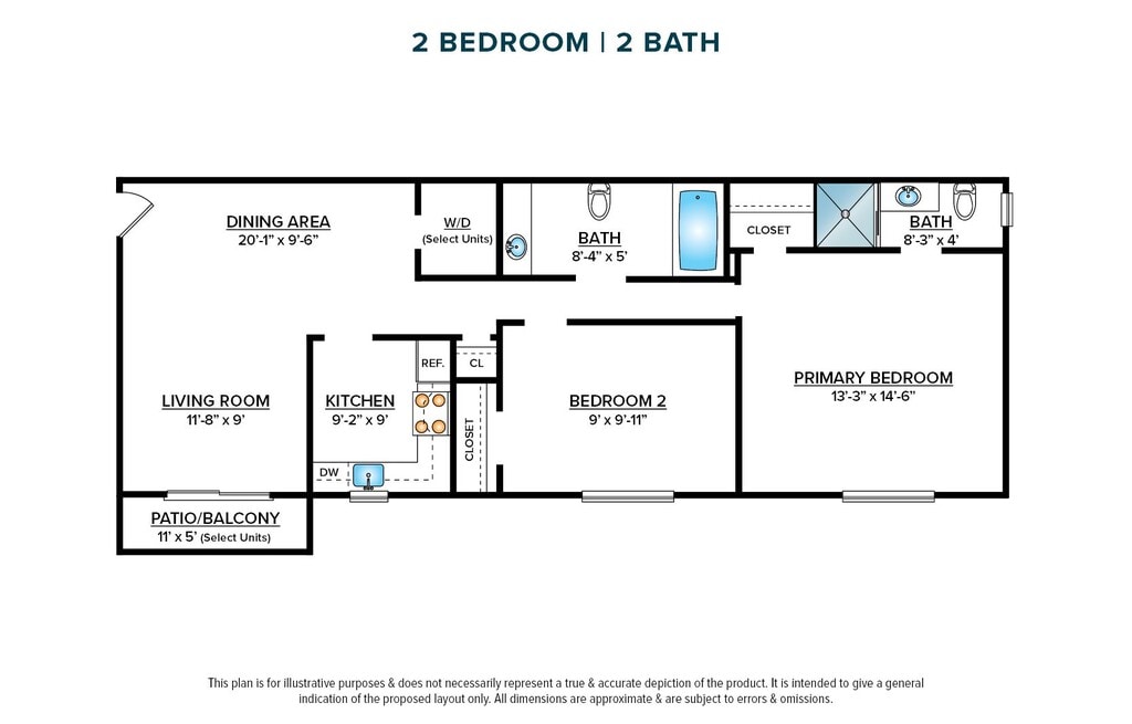 2 Dormitorios, 2 Baños, 950 pies²Galería del Modelo