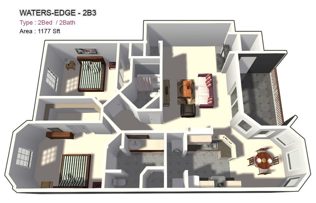 Modelo de apartamento: One Bed / One Bath1 Dormitorio, 1 Baño, 863 sq ftNo Disponible![]()