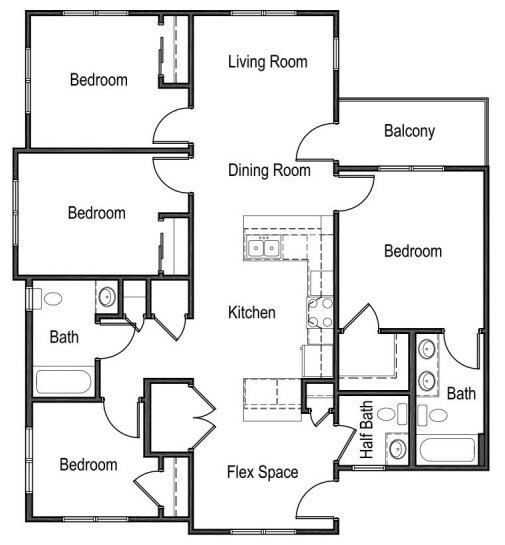 Modelo de apartamento: 4A4 Dormitorios, 2.5 Baños, 1330 sq ftDisponible Ahora![]()