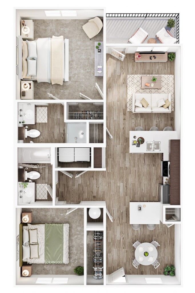 2 Dormitorios, 2 Baños, 968 pies²Disponible AhoraGalería del Modelo