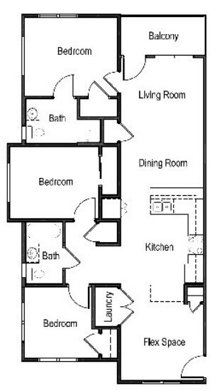 Modelo de apartamento: 3A3 Dormitorios, 2 Baños, 1158 sq ftDisponible Ahora![]()
