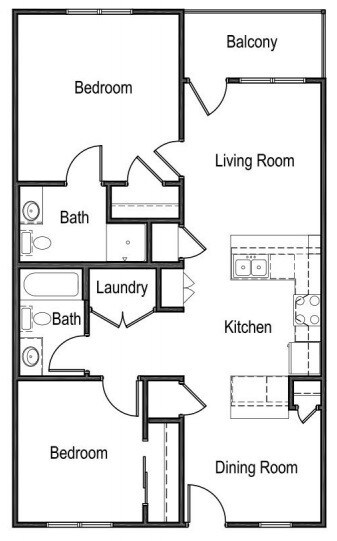 Modelo de apartamento: 2B2 Dormitorios, 2 Baños, 967-968 sq ftDisponible Ahora![]()