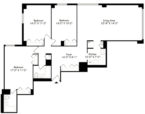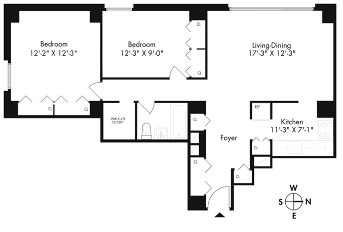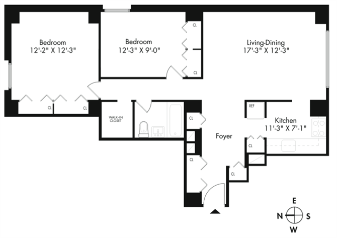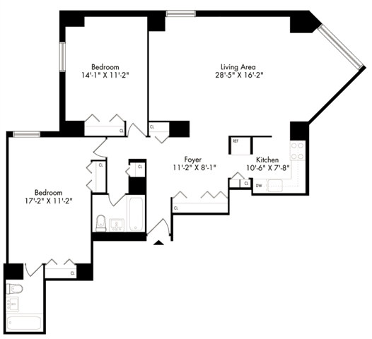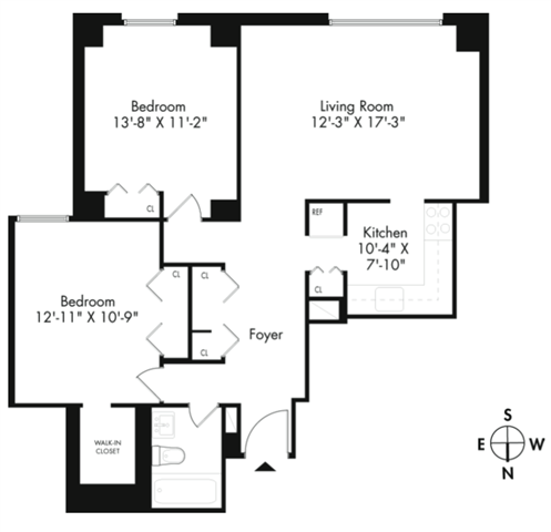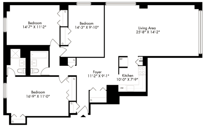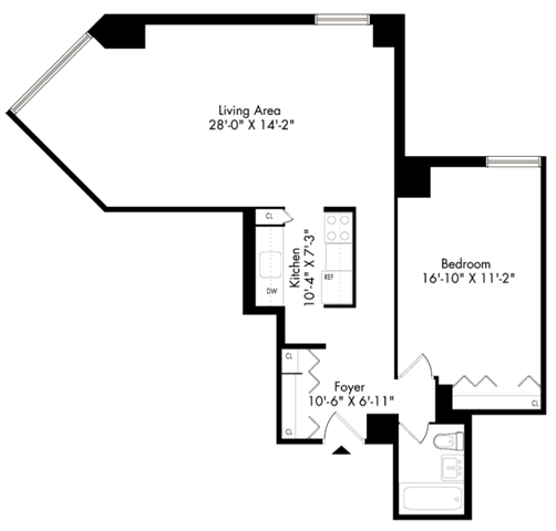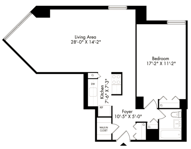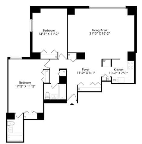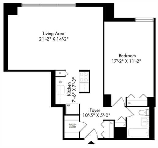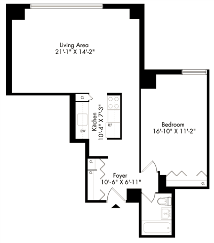 Modelo de apartamento: 1J Renovation 21 Dormitorio, 1 Baño, 721 sq ftDisponible Ahora![]()