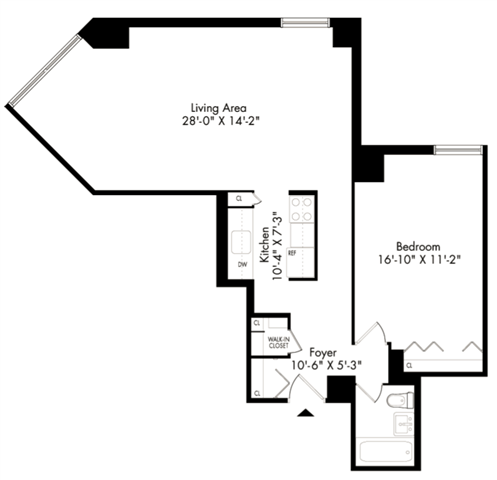 1D Renovation 5 - Plano 1 Unidad de apartamento: 40-04HModelo de apartamento: 1D Renovation 51 Dormitorio, 1 Baño, 631 sq ftDisponible Ahora1F Renovation 5