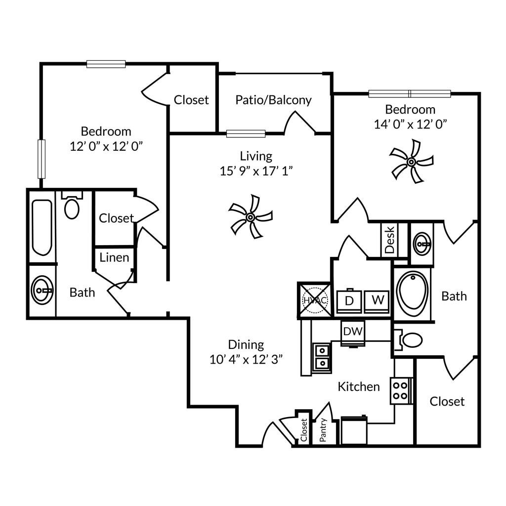 2 Dormitorios, 2 Baños, 1186 pies²Disponible AhoraGalería del Modelo