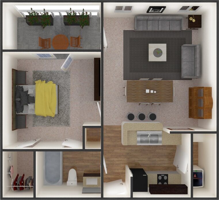 1 Dormitorio, 1 Baño, 814 pies²Disponible AhoraGalería del Modelo