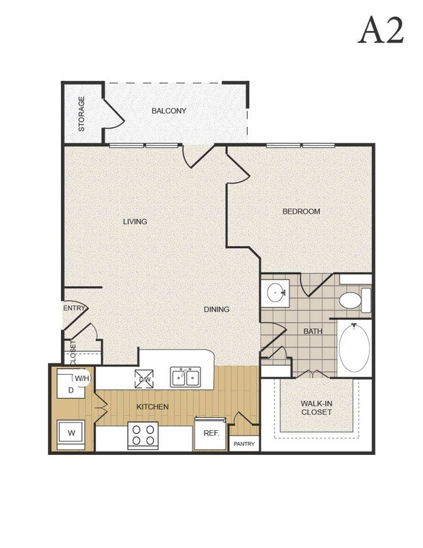 Modelo de apartamento: ADesde $1,1171 Dormitorio, 1 Baño, 560 sq ftDisponible Ahora![]()