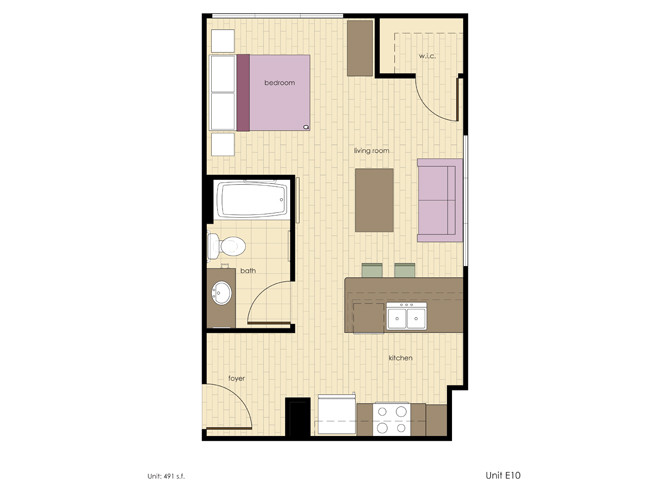 1 Dormitorio, 1 Baño, 491 pies²Galería del Modelo