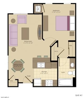 1 Dormitorio, 1 Baño, 645 pies²Galería del Modelo