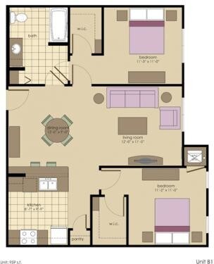 2 Dormitorios, 1 Baño, 959 pies²Galería del Modelo