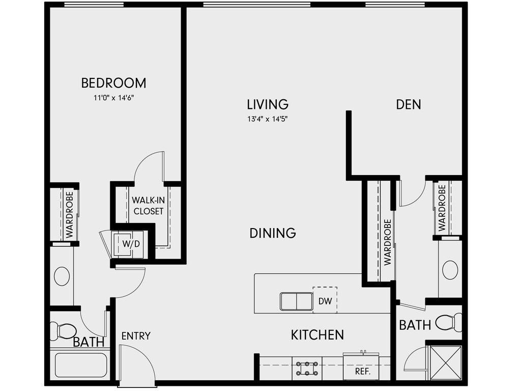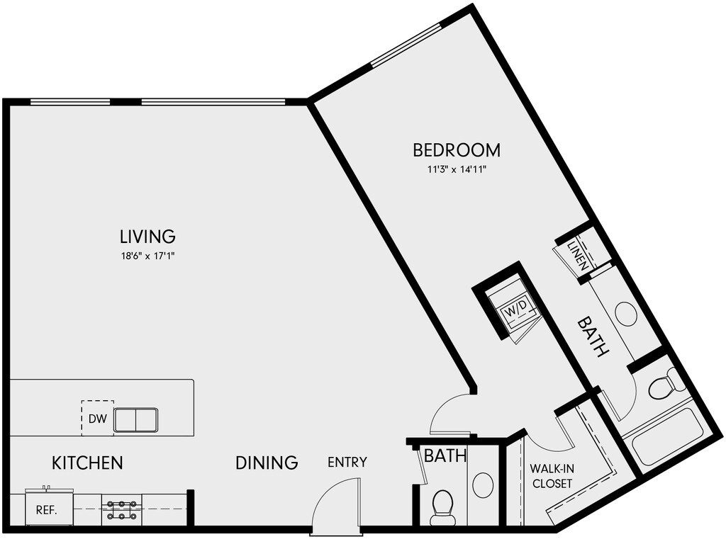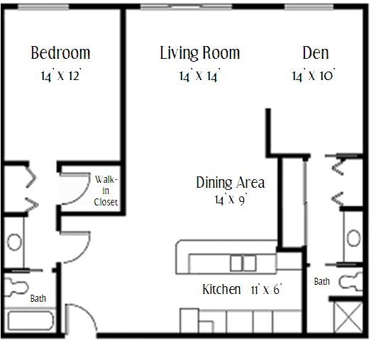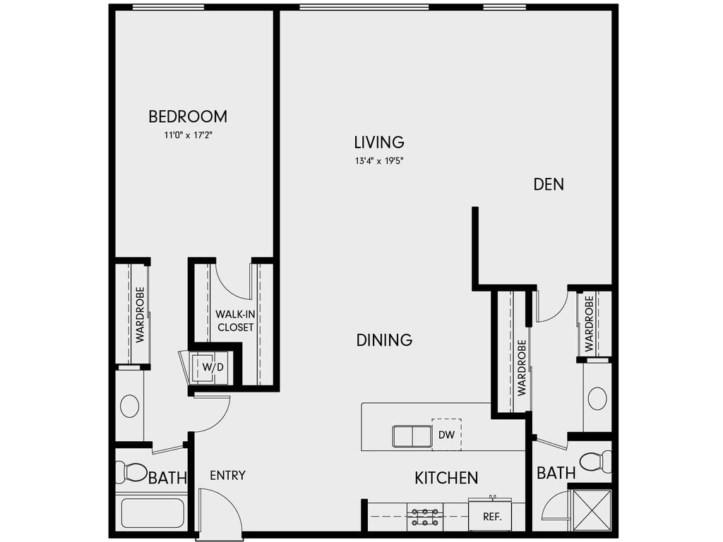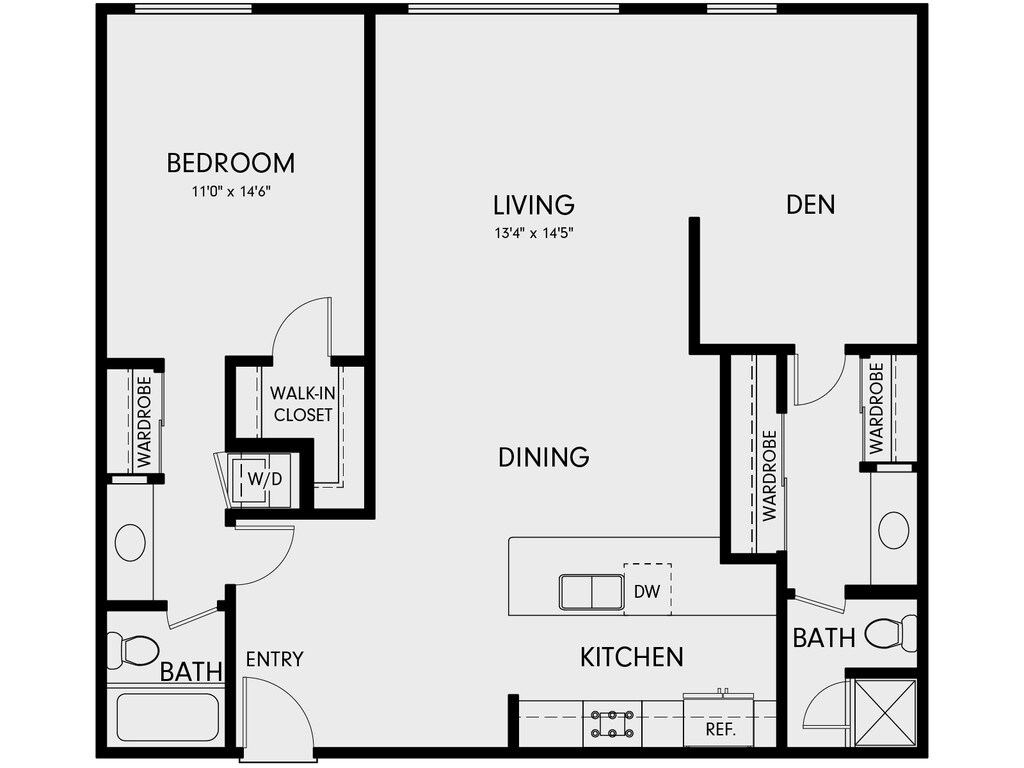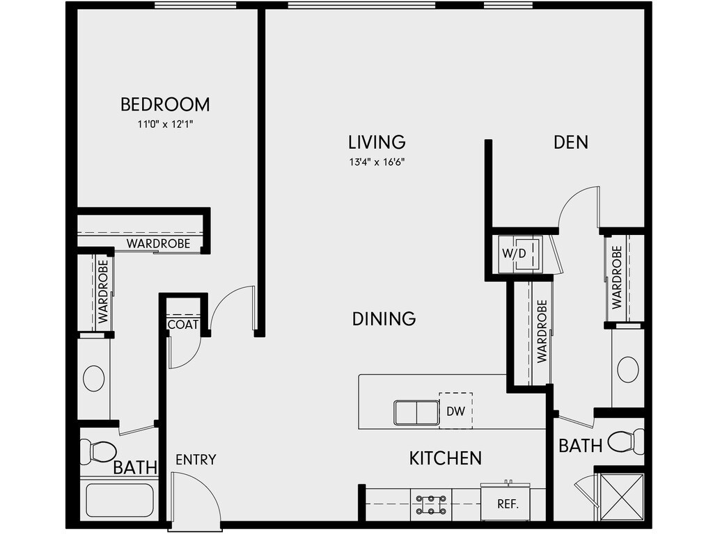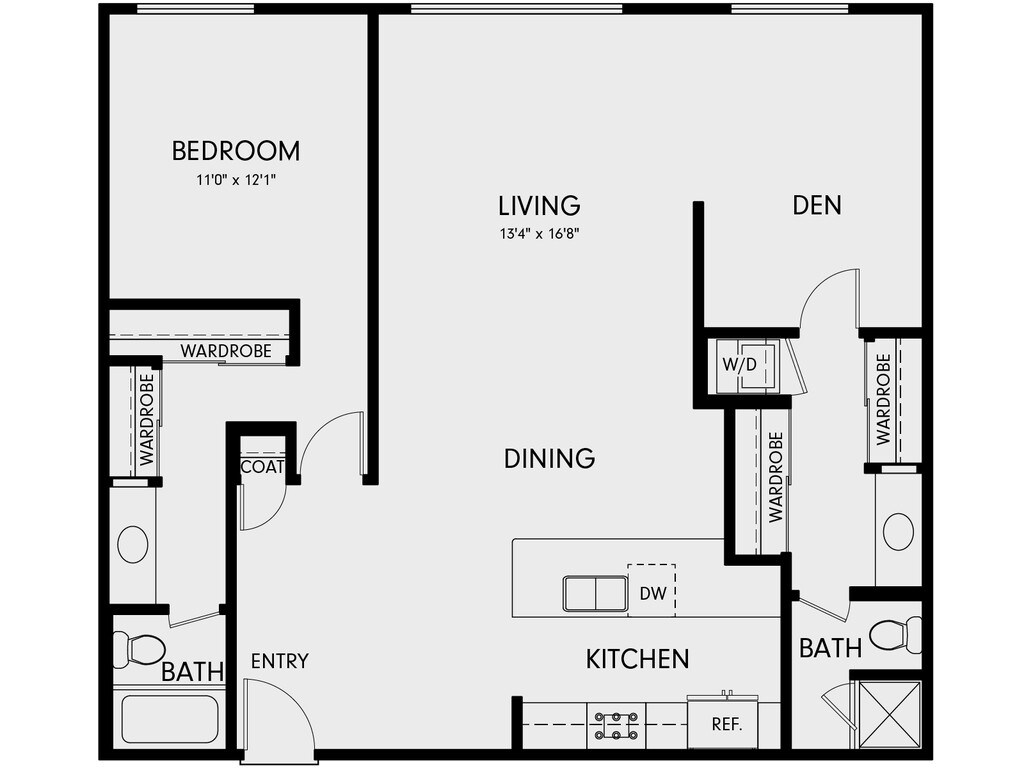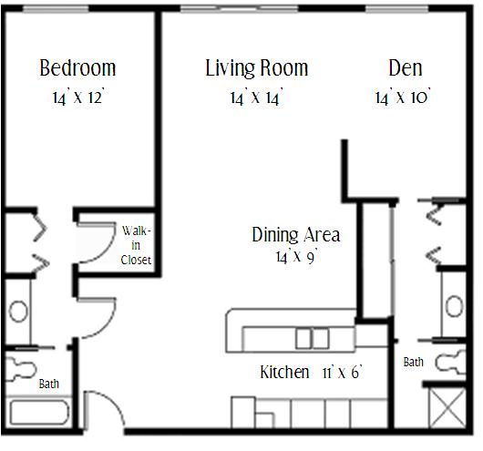 Modelo de apartamento: 1ADesde $3,1711 Dormitorio, 1 Baño, 810 sq ftDisponible Ahora![]()