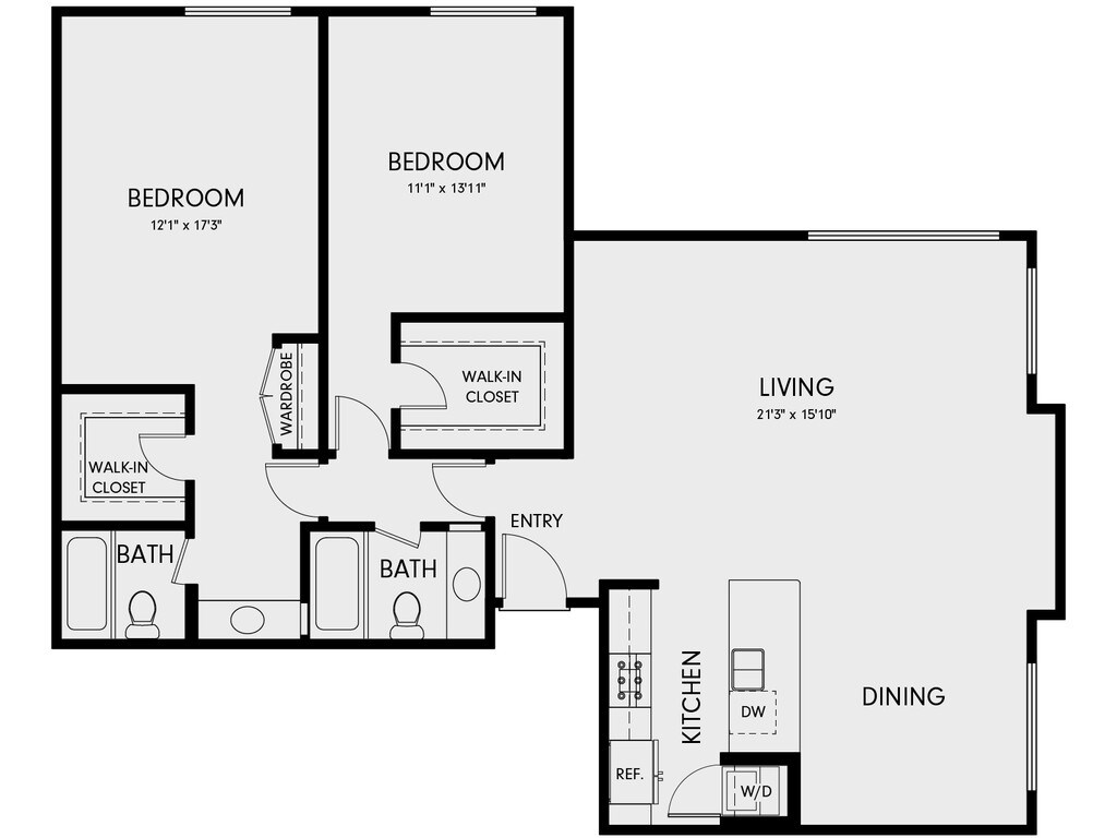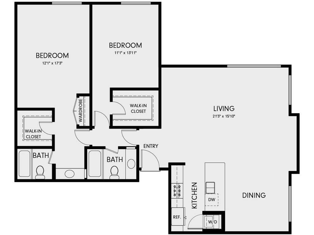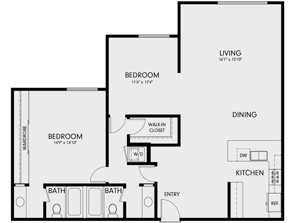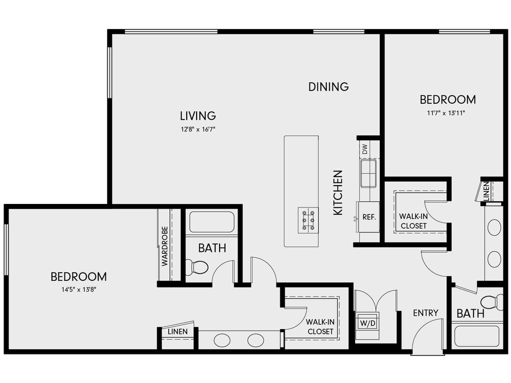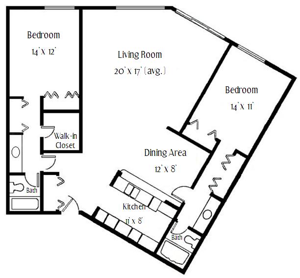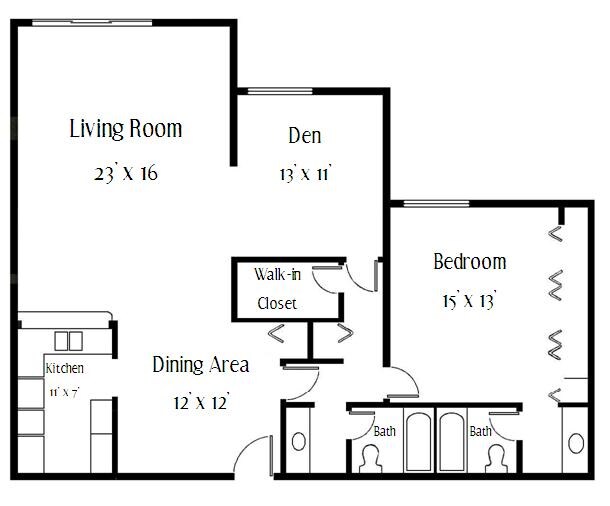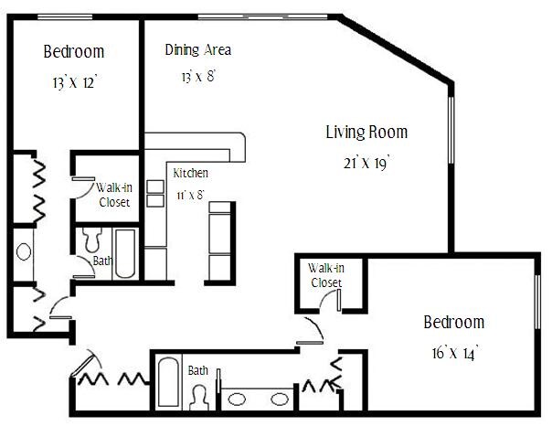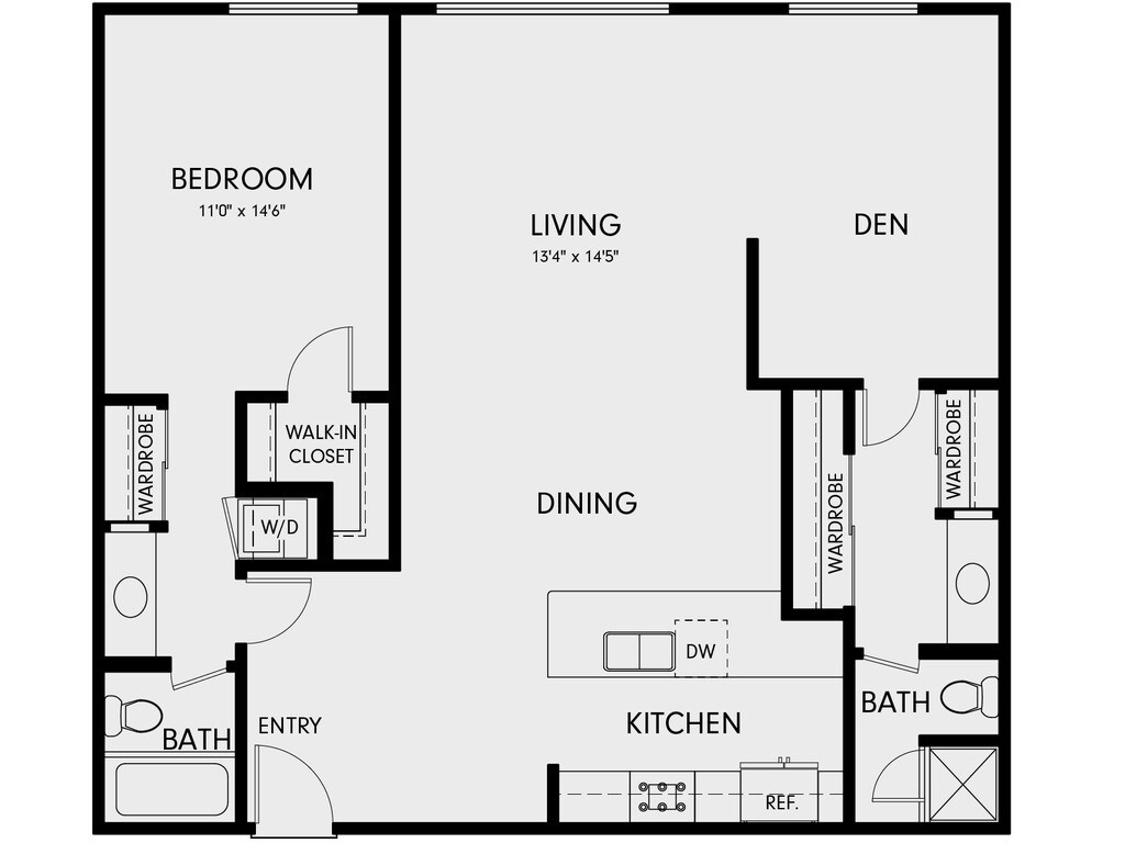 Modelo de apartamento: 1ADesde $3,1711 Dormitorio, 1 Baño, 810 sq ftDisponible Ahora![]()