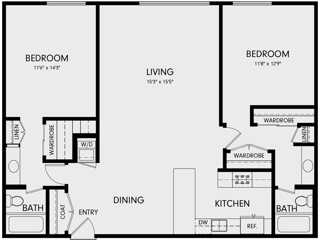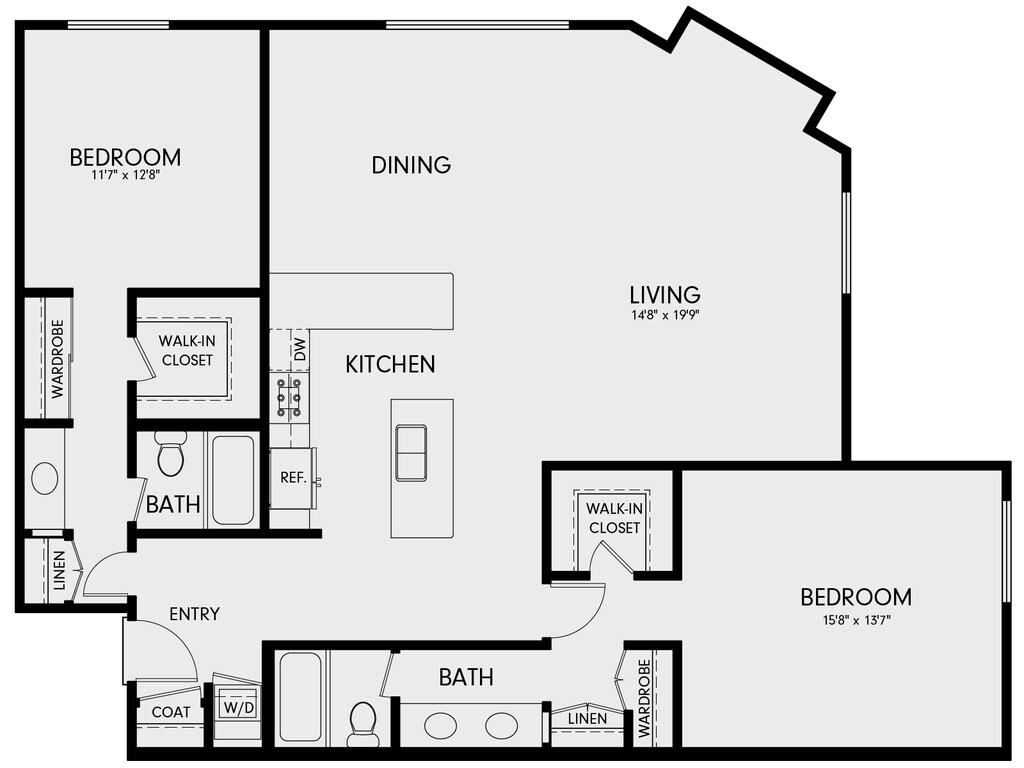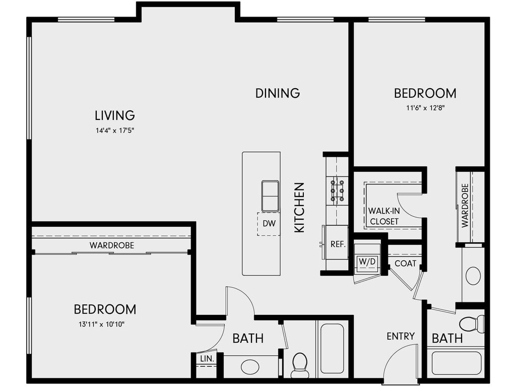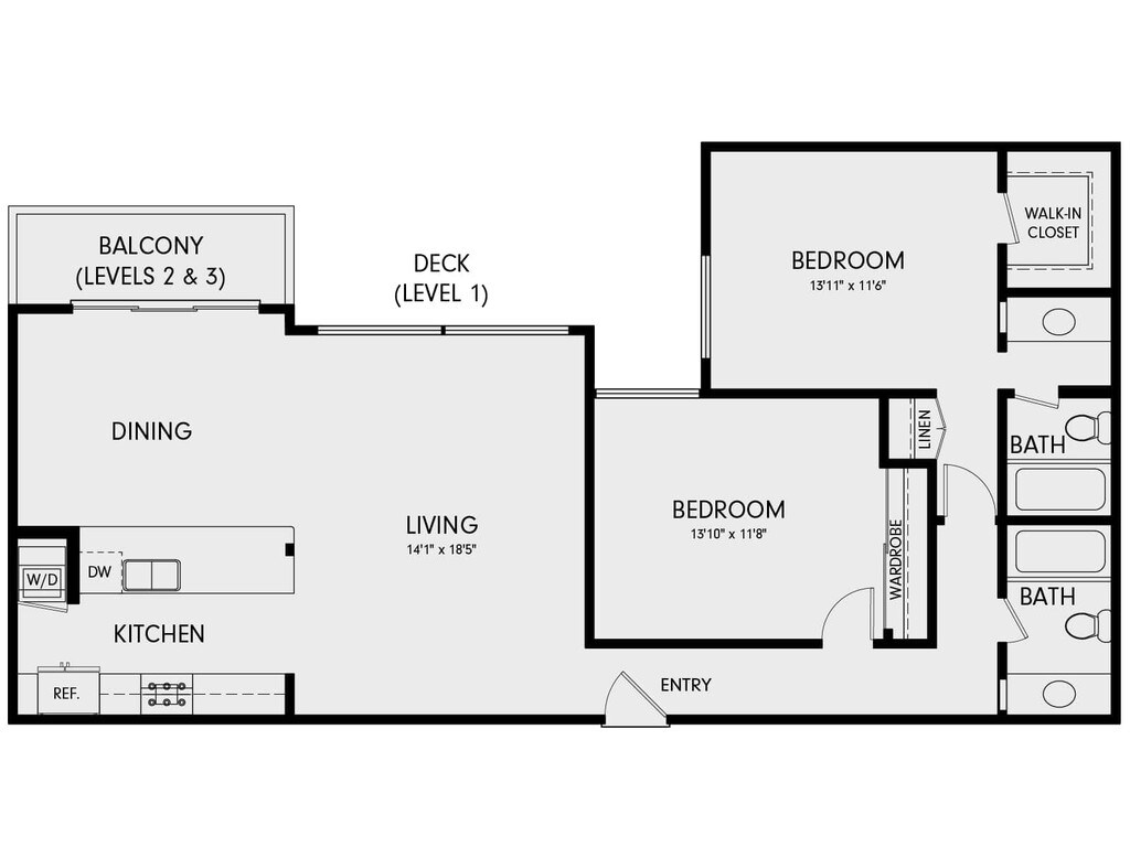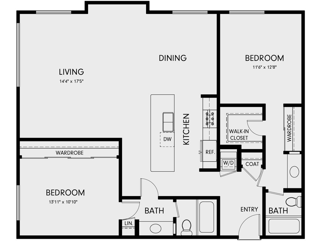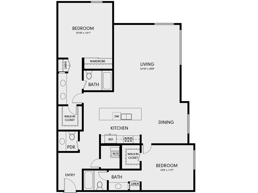 Modelo de apartamento: 1ADesde $3,1711 Dormitorio, 1 Baño, 810 sq ftDisponible Ahora![]()